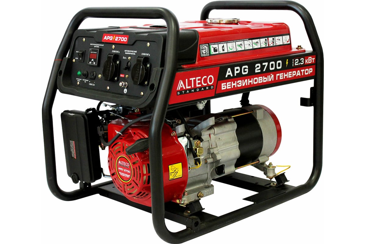 Особенности ALTECO APG 2700 Устойчивость к механическим повреждениям - металлическая силовая рама надежно защищает оборудование от механических повреждений Защита от пыли и влаги - пластиковые крышки позволяют исключить попадание влаги и пыли на контакты розеток Минимум вибраций - все узлы генератора устанавливаются на демпферную систему, что гарантирует минимум вибраций во время работы Повышенный рабочий ресурс - устройство оснащено производительным бензиновым двигателем с повышенным моторесурсом Легкая замена воздушного фильтра - легкий доступ к воздушному фильтру возможен благодаря быстросъемной крышке Комплектация: Инструкция по эксплуатации