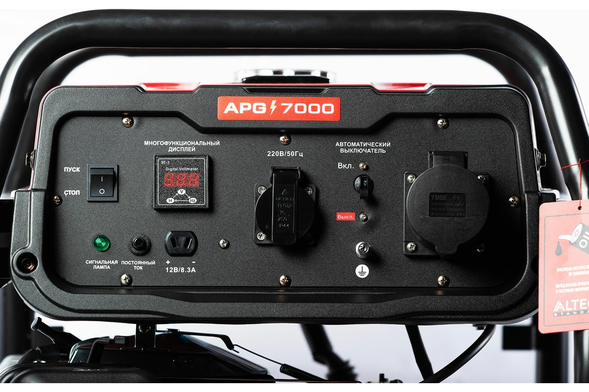 Бензиновый генератор ALTECO APG 7000 создан для аварийного и автономного электропитания. С ним любые внештатные ситуации пройдут гладко. И свет будет даже там, где электричества никогда не было! Номинальная мощность 5 кВт позволяет снабжать энергией маломощные бытовые приборы и строительные инструменты. Особенности ALTECO APG 7000 Устойчивость к механическим повреждениям - металлическая силовая рама надежно защищает оборудование от механических повреждений Защита от пыли и влаги - пластиковые крышки позволяют исключить попадание влаги и пыли на контакты розеток Минимум вибраций - все узлы генератора устанавливаются на демпферную систему, что гарантирует минимум вибраций во время работы Повышенный рабочий ресурс - устройство оснащено производительным бензиновым двигателем с повышенным моторесурсом Легкая замена воздушного фильтра - легкий доступ к воздушному фильтру возможен благодаря быстросъемной крышке Комплектация: Инструкция по эксплуатации