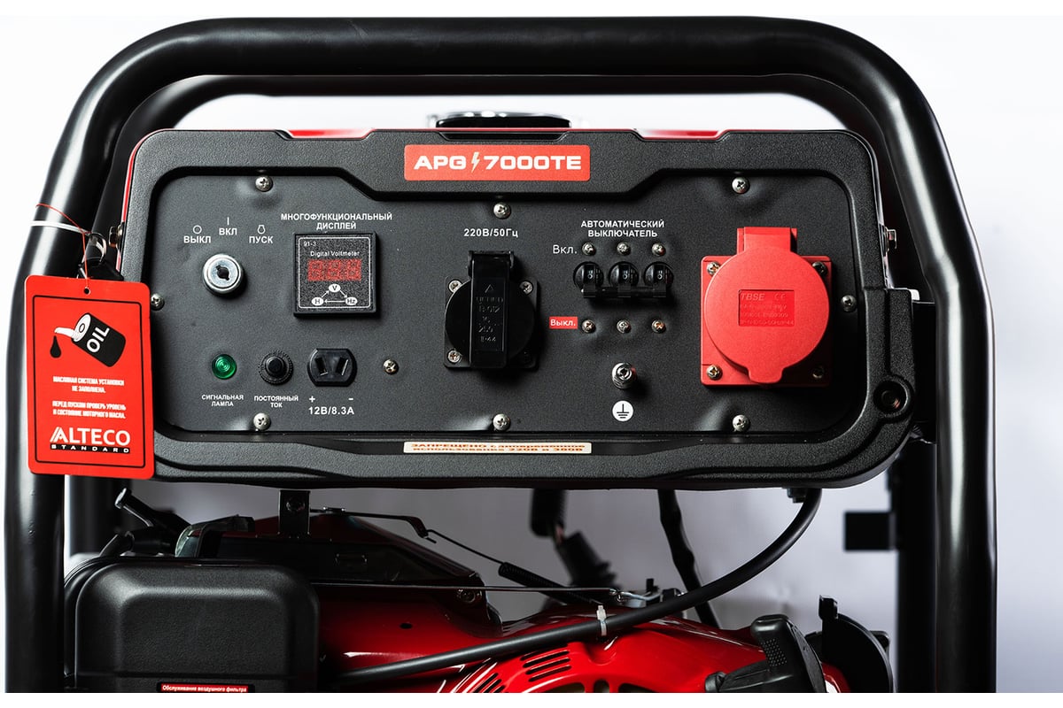 О товаре ALTECO Бензиновый генератор APG 7000TE (N) Standard Назначение: бензиновый генератор ALTECO APG 7000TE (N) Standard эксплуатируется на строительных, промышленных и других объектах. Обеспечивает электропитание различного оборудования и техники. Двигатель: агрегат оснащен мощным бензиновым мотором. Воздушное охлаждение позволяет избежать перегрева при высоких нагрузках. Конструкция: модель смонтирована на прочной стальной раме с антикоррозийным покрытием для транспортировки и защиты от повреждений. Оборудован вместительный топливный бак объемом 25 литров. Преимущества: предусмотрены розетки 220 В и 380 В для подключения приборов. Автоматический регулятор напряжения гарантирует стабильную работу. Особенности Система воздушного охлаждения Стальная защитная рама Пониженный расход топлива Небольшие габариты