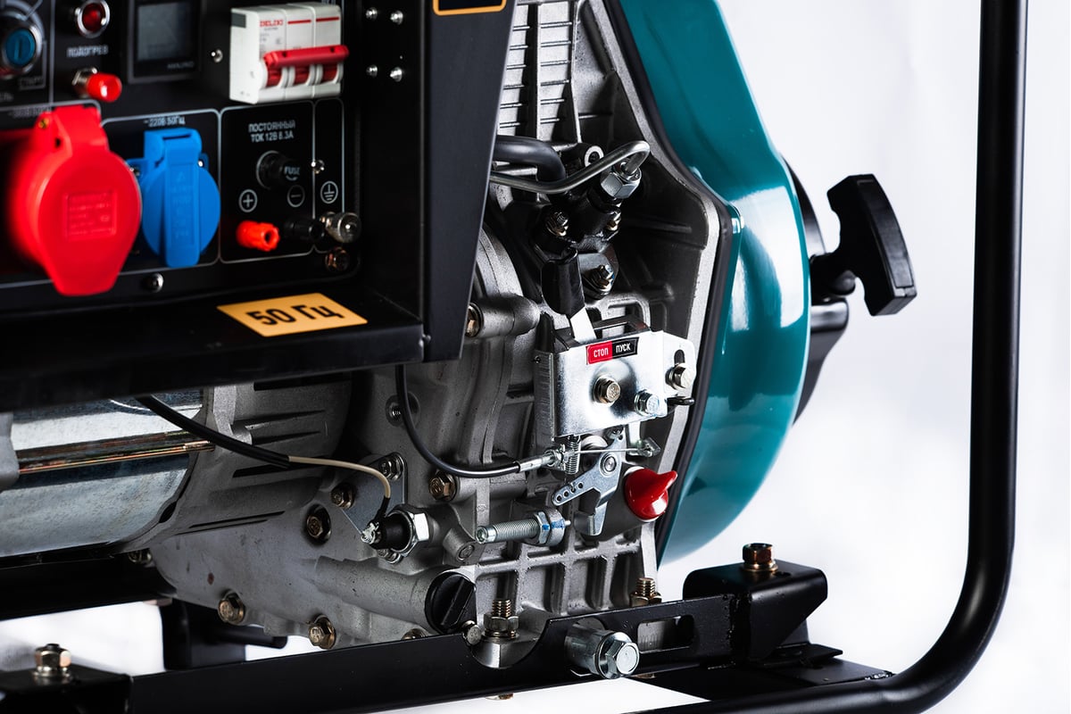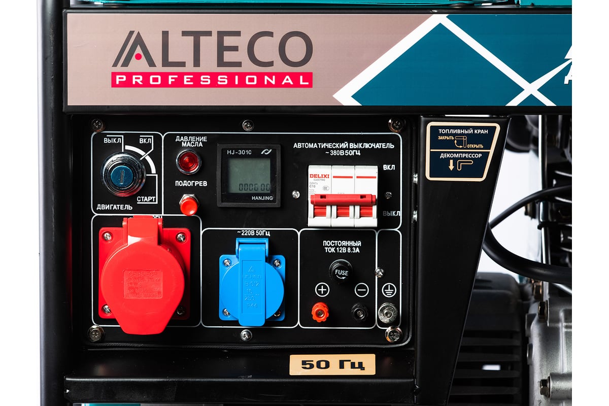 Дизельный генератор Alteco Professional ADG 7500 TE подходит для обеспечения питания как 1-фазных, так и 3-фазных потребителей. Находит применение в ремонтных и строительных работах, а также в быту. Оборудован синхронным альтернатором с обмоткой из меди. Оборудование создано на базе двигателя с рабочим объемом 523 см³. Наличие электрического стартера существенно упрощает запуск мотора. Воздушное охлаждение защищает двигатель от перегрева. Топливный бак на 12,5 л обеспечивает длительную автономность. Устройство поставляется на прочной раме открытого типа. В интернет-магазине Рывок можно приобрести дизель-генератор по выгодной цене. Особенности Выход 12 В/8,3 А Вольтметр Медная обмотка альтернатора