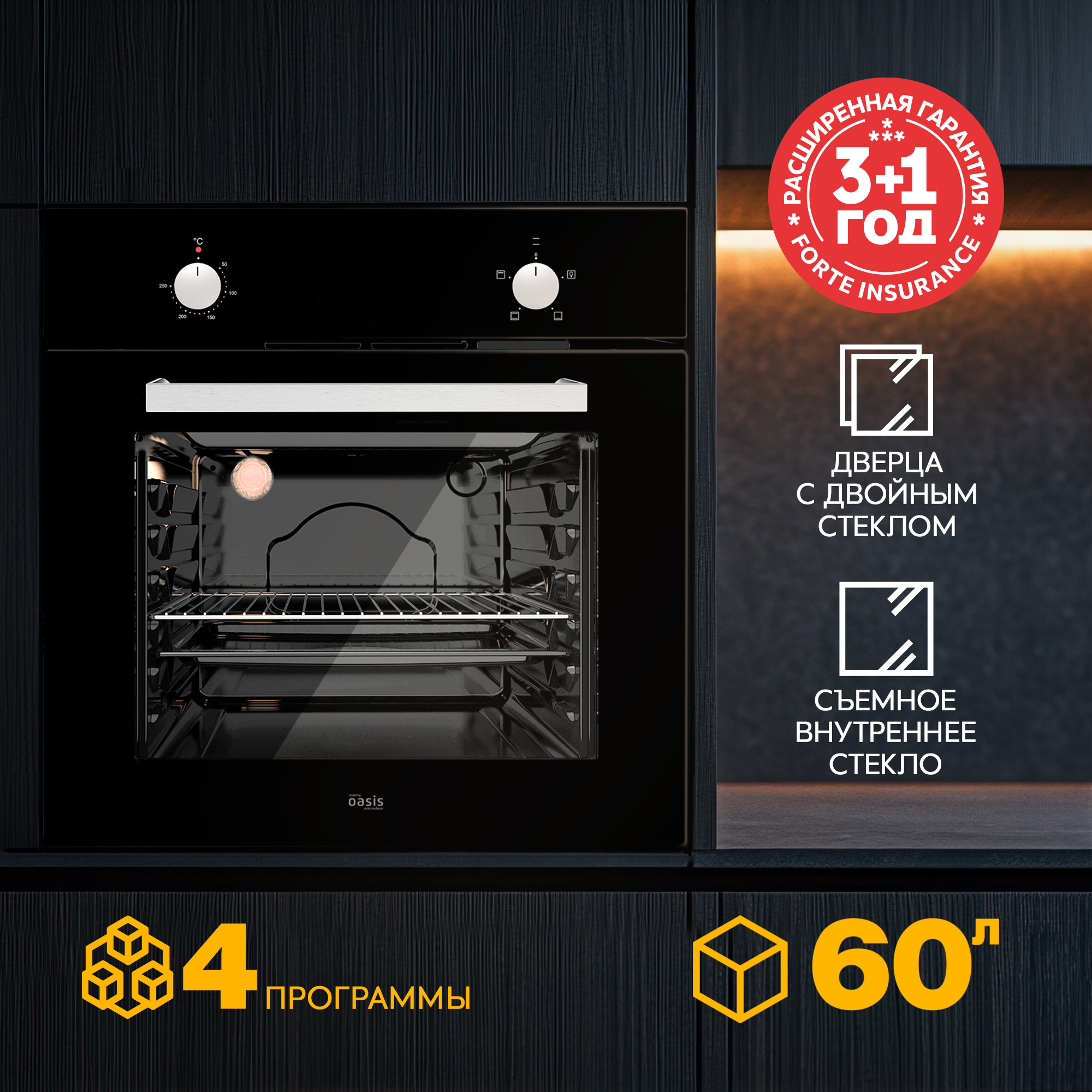 Электрический встраиваемый духовой шкаф making Oasis everywhere – это выбор для тех, кто ищет надёжность и простоту в использовании. Панель управления из стекла придаёт устройству современный вид. Механическое управление обеспечивает понятную настройку.