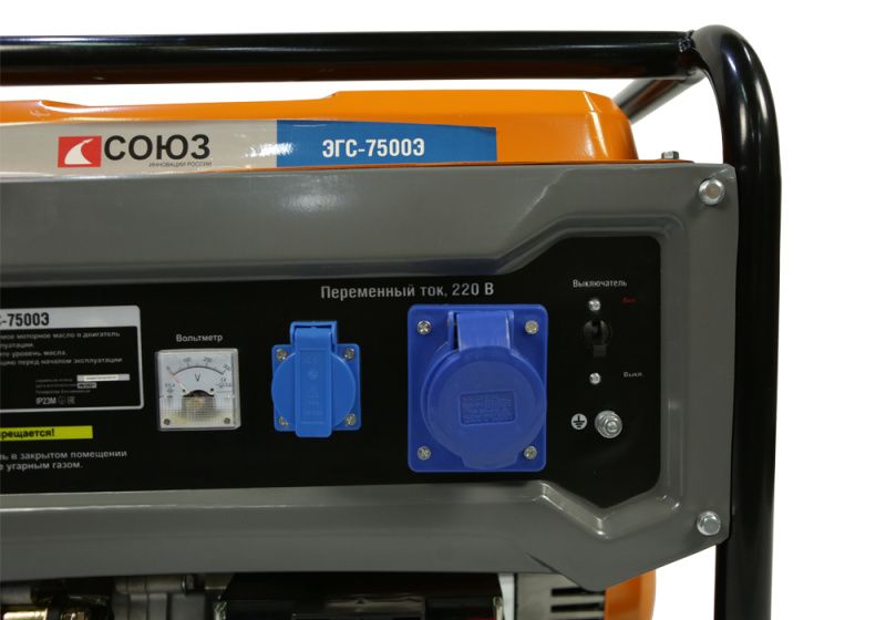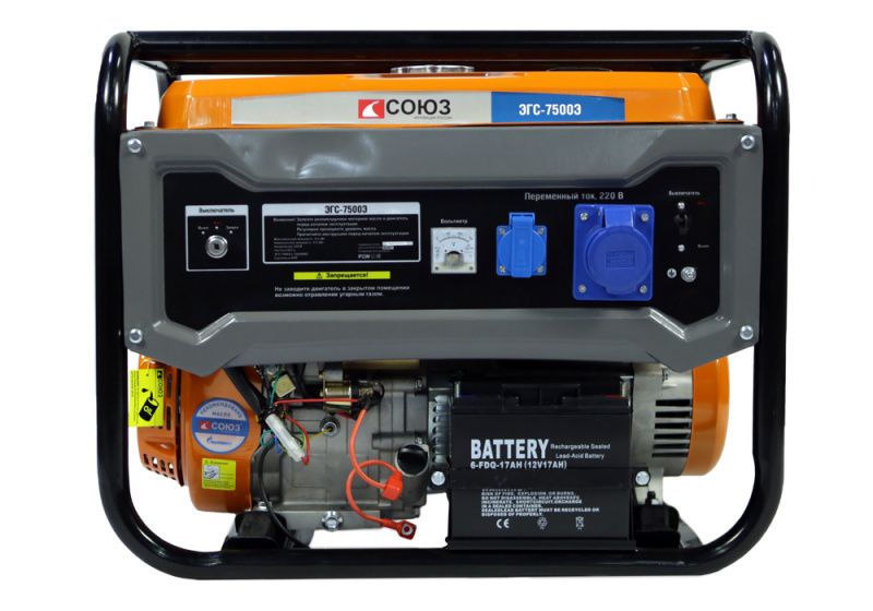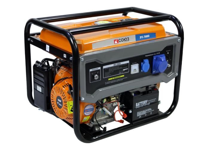 Бензогенератор СОЮЗ 6,5/6,0 кВт, AVR (Авто. Рег.Напр.), эл/ручн старт, 82 кг, бак 25л ЭГС-7500Э представляет собой мобильное оборудование, которое легко перемещать по строительной площадке и мастерской либо хранить в подвале или гараже частного дома. Модель обеспечивает чистый ток без помех.