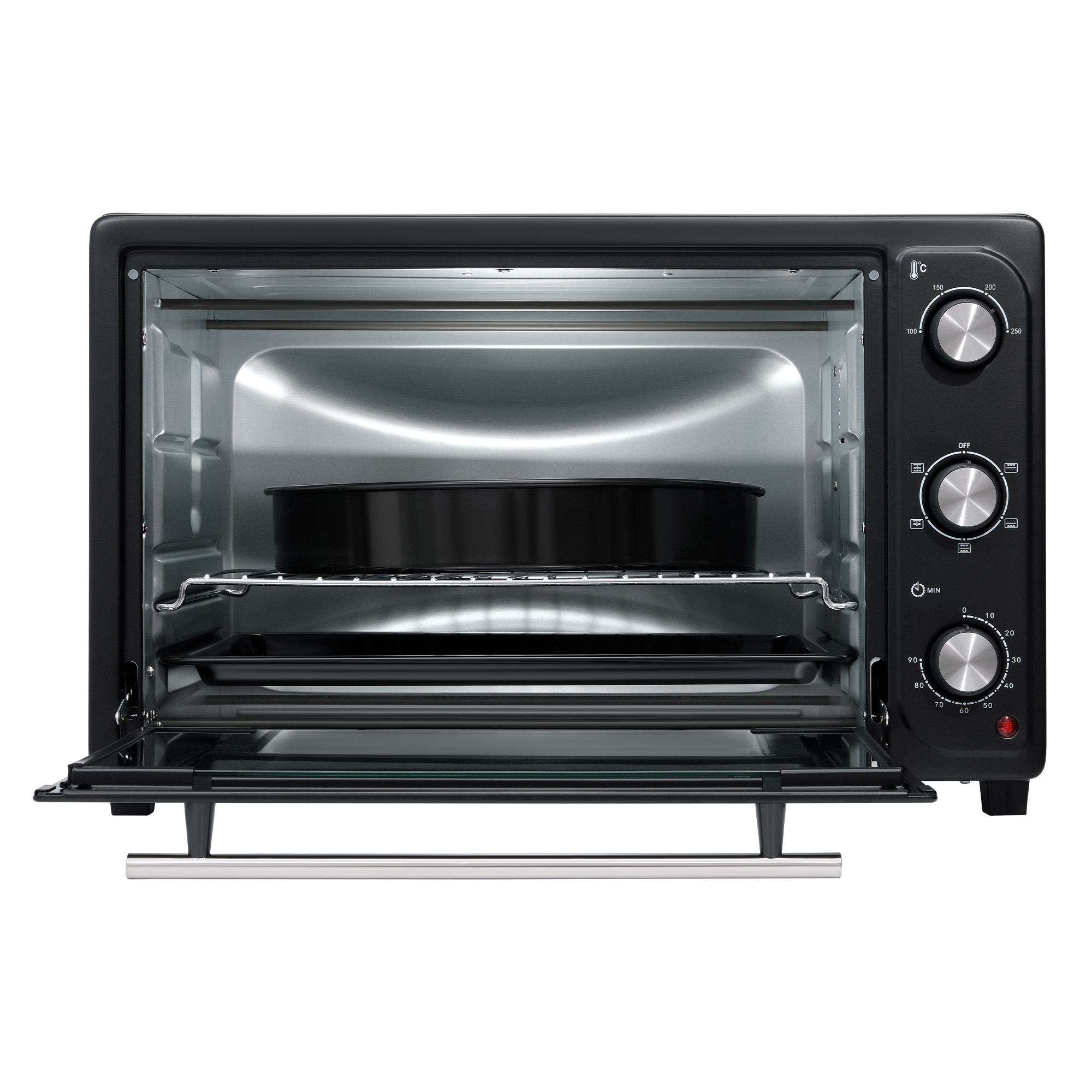 Все элементы у мини-печи выполнены с вниманием к деталям. Механическая панель управления легко настраивается и позволяет сфокусировать своё внимание на готовке, а не на настройке мини-печи. Уход за мини-печью занимает минимум усилий: съёмные противни и стеклянная дверца легко моются. В комплекте есть всё необходимое для начала приготовления пищи без покупки дополнительной посуды.