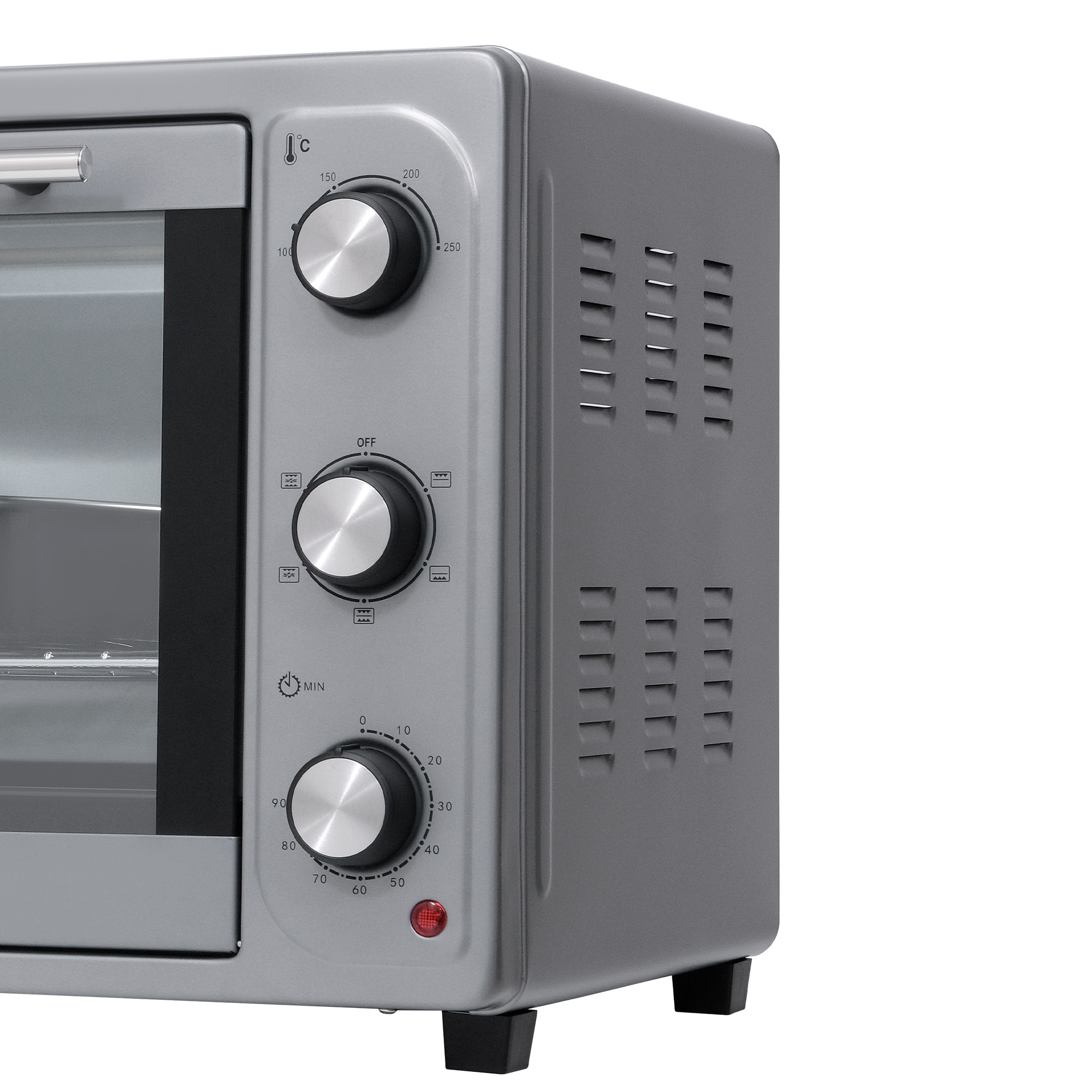 Все элементы у мини-печи выполнены с вниманием к деталям. Механическая панель управления легко настраивается и позволяет сфокусировать своё внимание на готовке, а не на настройке мини-печи. Уход за мини-печью занимает минимум усилий: съёмные противни и стеклянная дверца легко моются. В комплекте есть всё необходимое для начала приготовления пищи без покупки дополнительной посуды.