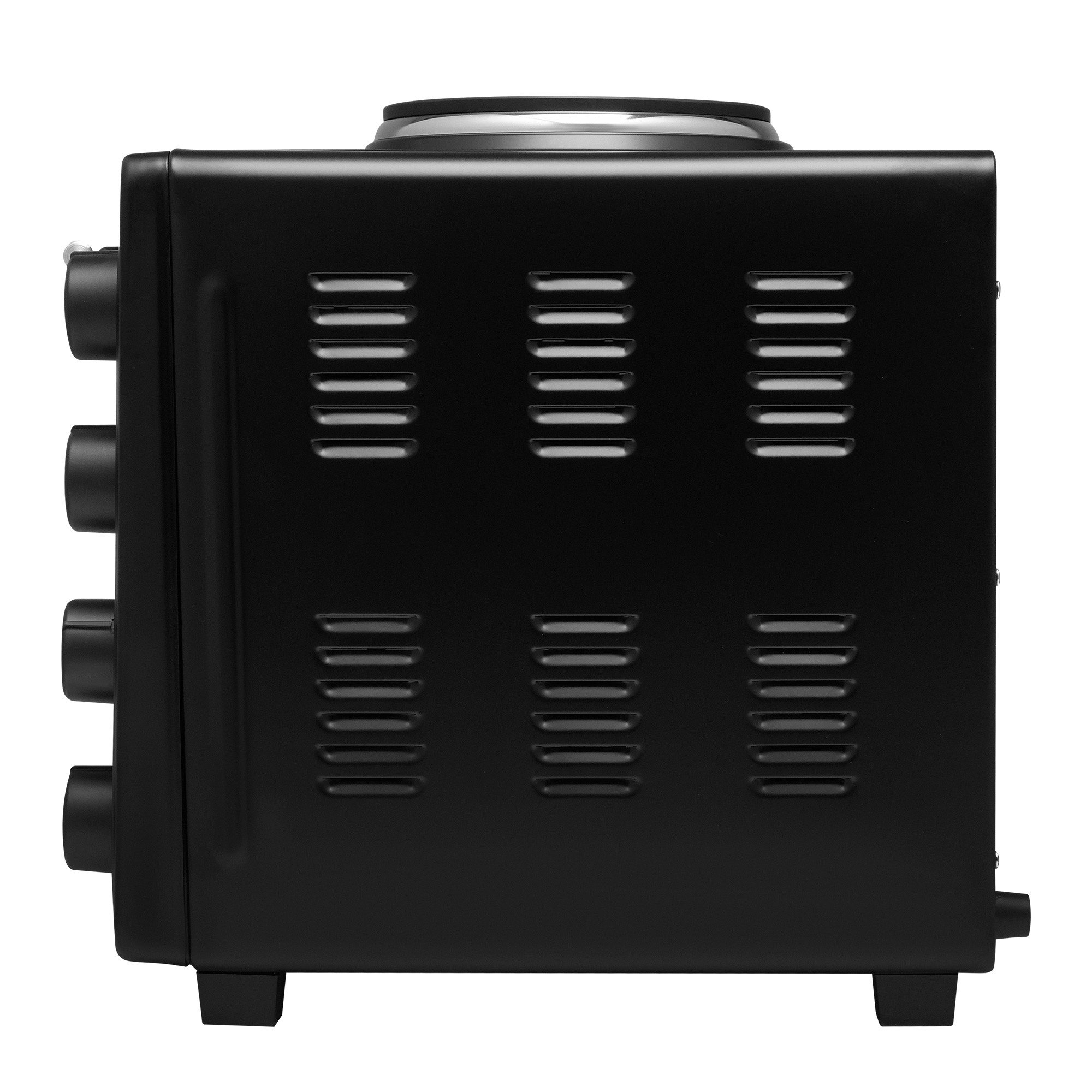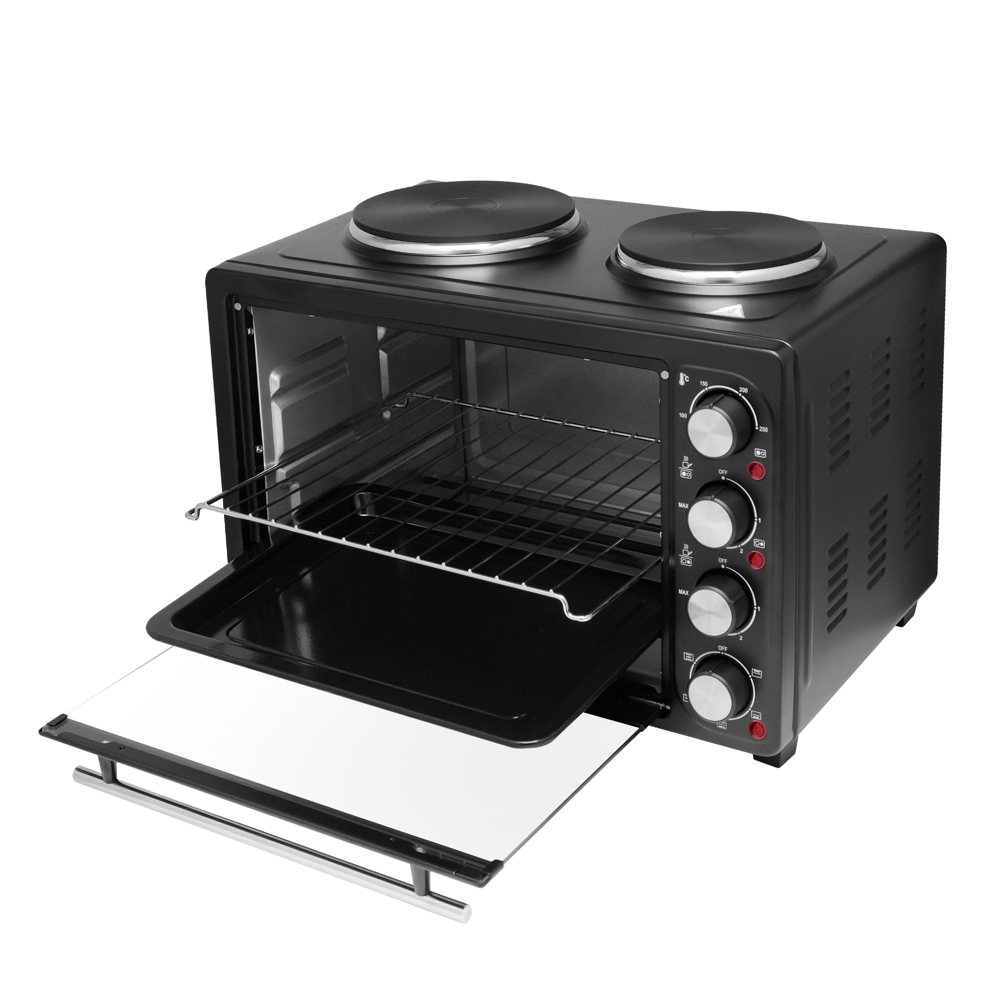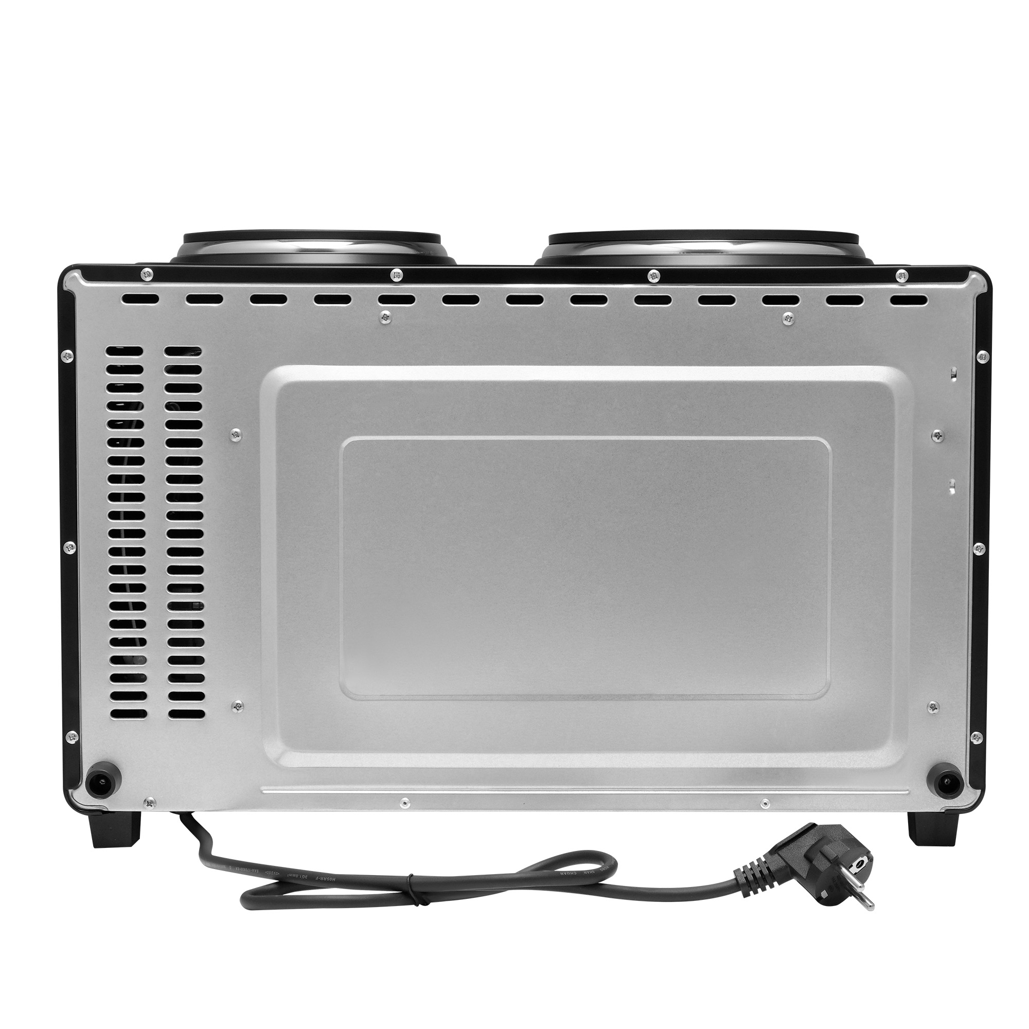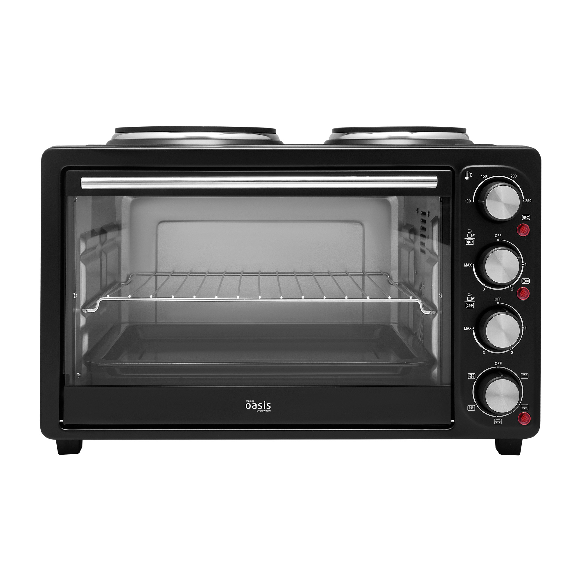 Электрическая мини-печь making Oasis everywhere со встроенными конфорками — это универсальное решение, которое способно заменить сразу духовой шкаф и варочную панель. Устройство актуально в условиях небольшого помещения, например дома без кухни, где нет возможности установить два кухонных прибора, но при этом не хочется ограничивать себя в приготовлении блюд. Функция конвекции обеспечивает равномерную циркуляцию горячего воздуха, благодаря чему блюда пропекаются идеально — без подгоревших краёв и сырых середин.