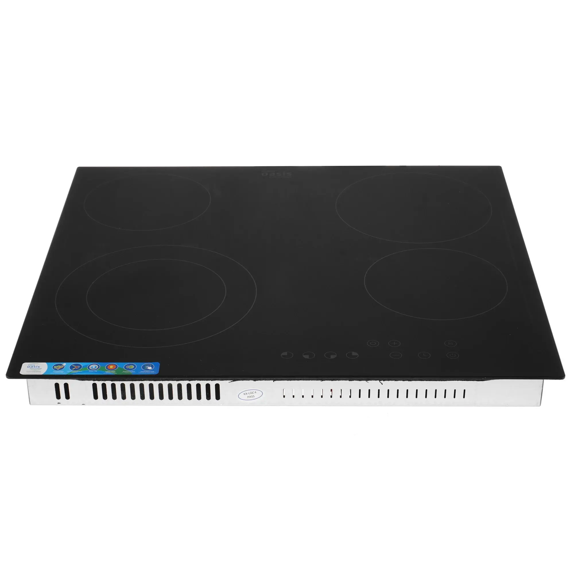 Цвет черный, стеклокерамика Kanger, сенсорное управление Touch Slider, 4 электрические конфорки, двойная зона расширения, защитная блокировка от детей, таймер на каждую зону,индикатор остаточного тепла, ширина варочной поверхности 60 см, Китай.