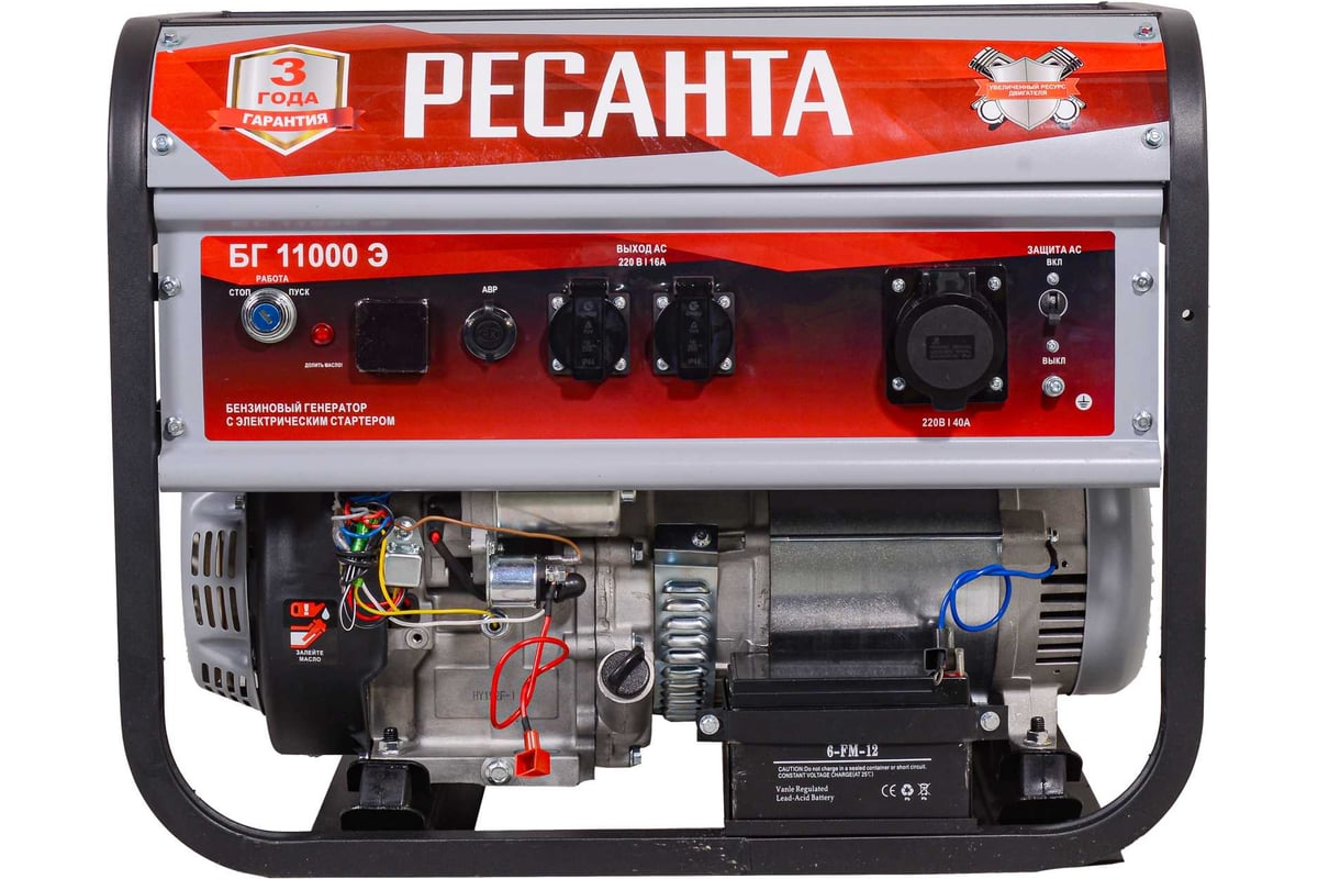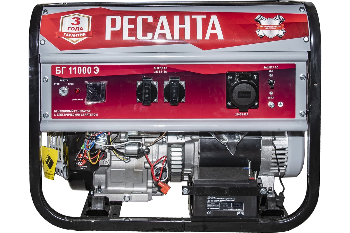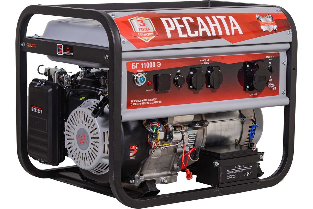 В условиях временного или постоянного отсутствия электроэнергии обеспечить питание электрооборудования можно с помощью генератора РЕСАНТА модели БГ 11000 Э. Несмотря на компактные габариты и относительно небольшой вес, бензогенератор демонстрирует высокий КПД и хорошие показатели мощности. Генератор РЕСАНТА БГ 11000 Э имеет увеличенный ресурс двигателя, медную обмотку альтернатора. Оснащен многофункциональным цифровым дисплеем с индикацией величины напряжения, частоты тока и счетчиком моточасов; Модель БГ 11000 Э имеет 2 розетки 16 А. Агрегат оснащен надежным одноцилиндровым двигателем, который работает на неэтилированном бензине. Сфера применения установки включает в себя, как коммерческие объекты (магазины, ларьки, офисы), так и загородные дома, дачи, подсобные хозяйства. При покупке бензинового генератора Ресанта БГ 11000 Э, Вы останетесь довольны его прекрасной производительностью и компактным внешним видом.