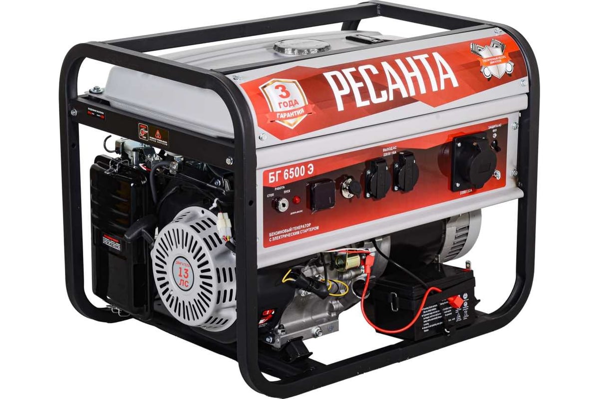 В условиях временного или постоянного отсутствия электроэнергии обеспечить питание электрооборудования можно с помощью генератора РЕСАНТА модели БГ 6500 Э. Несмотря на компактные габариты и относительно небольшой вес, бензогенератор демонстрирует высокий КПД и хорошие показатели мощности. Генератор РЕСАНТА БГ 6500 Э имеет увеличенный ресурс двигателя, медную обмотку альтернатора. Оснащен многофункциональным цифровым дисплеем с индикацией величины напряжения, частоты тока и счетчиком моточасов; Модель БГ 6500 Э имеет 2 розетки 16 А. Агрегат оснащен надежным одноцилиндровым двигателем, который работает на неэтилированном бензине. Сфера применения установки включает в себя, как коммерческие объекты (магазины, ларьки, офисы), так и загородные дома, дачи, подсобные хозяйства. При покупке бензинового генератора Ресанта БГ 6500 Э, Вы останетесь довольны его прекрасной производительностью и компактным внешним видом.