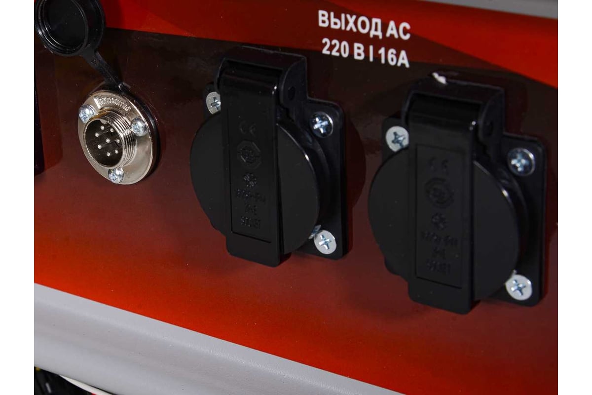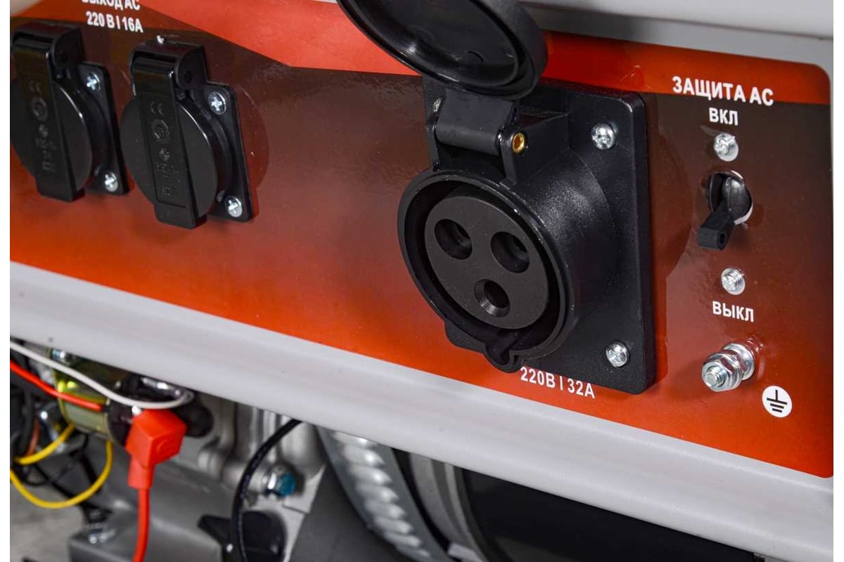 - Все модели имеют 2 розетки 16 А, а модели от 6500 и выше также имеют розетку на 32 А.