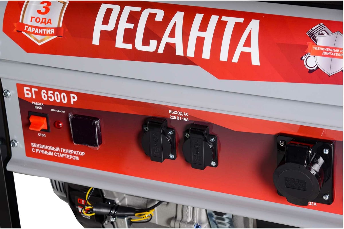 В условиях временного или постоянного отсутствия электроэнергии обеспечить питание электрооборудования можно с помощью генератора РЕСАНТА модели БГ 6500 P. Бензогенератор демонстрирует высокий КПД и хорошие показатели мощности. Генератор РЕСАНТА БГ 6500 P имеет увеличенный ресурс двигателя, медную обмотку альтернатора. Оснащен многофункциональным цифровым дисплеем с индикацией величины напряжения, частоты тока и счетчиком моточасов. Агрегат оснащен надежным одноцилиндровым двигателем, который работает на неэтилированном бензине. Сфера применения установки включает в себя, как коммерческие объекты (магазины, ларьки, офисы), так и загородные дома, дачи, подсобные хозяйства. При покупке бензинового генератора Ресанта БГ 6500 P, Вы останетесь довольны его прекрасной производительностью и компактным внешним видом.