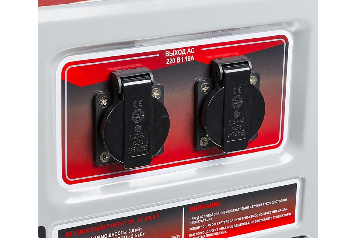- Все модели имеют 2 розетки 16 А, а модели от 6500 и выше также имеют розетку на 32 А;