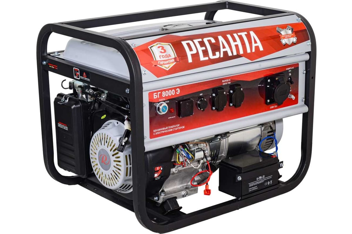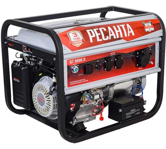 В условиях временного или постоянного отсутствия электроэнергии обеспечить питание электрооборудования можно с помощью генератора РЕСАНТА модели БГ 8000 Э. Бензогенератор демонстрирует высокий КПД и хорошие показатели мощности. Генератор РЕСАНТА БГ 8000 Э имеет увеличенный ресурс двигателя, медную обмотку альтернатора. Оснащен многофункциональным цифровым дисплеем с индикацией величины напряжения, частоты тока и счетчиком моточасов. Агрегат оснащен надежным одноцилиндровым двигателем, который работает на неэтилированном бензине. Сфера применения установки включает в себя, как коммерческие объекты (магазины, ларьки, офисы), так и загородные дома, дачи, подсобные хозяйства. При покупке бензинового генератора Ресанта БГ 8000 Э, Вы останетесь довольны его прекрасной производительностью и компактным внешним видом.