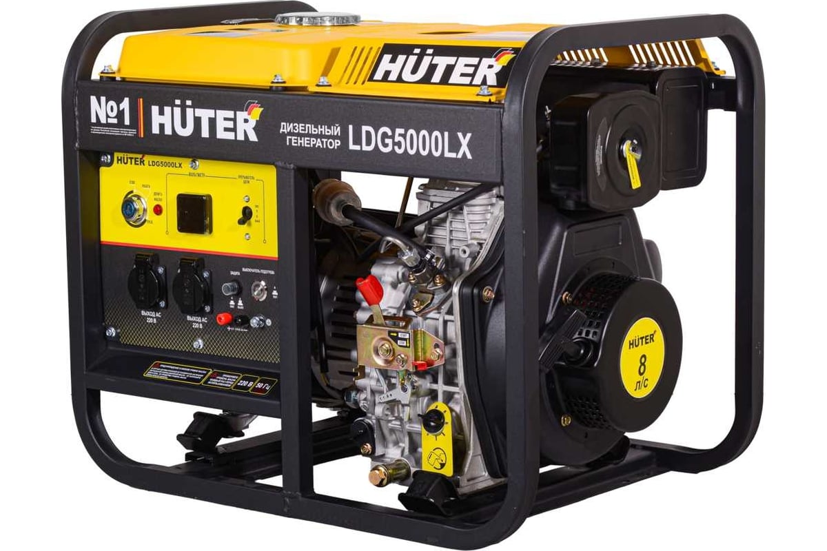 Электрогенератор дизельный (дизельная электростанция) - электрическая машина, предназначенная для автономного электроснабжения в повторно-кратковременном режиме потребителей бытового и аналогичного назначения, относящихся к классу переносных электроприемников. В качестве первичного двигателя используется дизельный двигатель. Электрогенератор Huter имеет бытовое назначение.