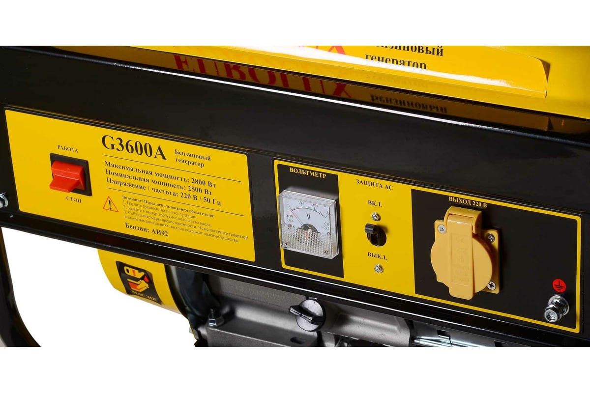 Электрогенератор бензиновый (бензогенератор) - электрическая машина, предназначенная для автономного электроснабжения в повторно кратковременном режиме потребителей бытового и аналогичного назначения, относящихся к классу переносных электроприемников. В качестве первичного двигателя используется карбюраторный двигатель, топливом для которого является неэтилированный бензин. Электрогенератор EUROLUX имеет бытовое назначение.