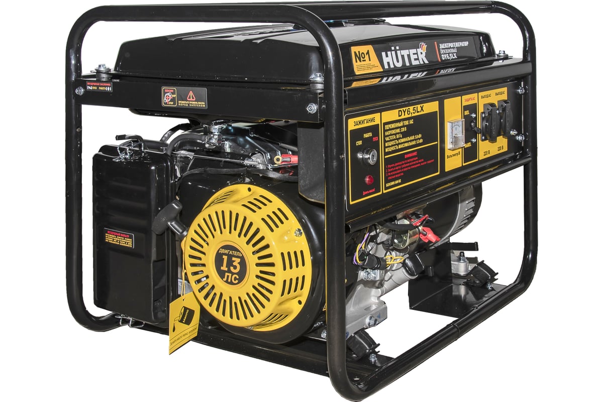 Бензиновый генератор Huter DY6,5LX – портативная компактная электростанция, обеспечивающая электроснабжение бытовой техники и профессионального оборудования, питающегося от стандартной сети 220 Вольт. Это самый выгодный бензиновый электрогенератор, с оптимальными техническими характеристиками и низким расходом топлива.