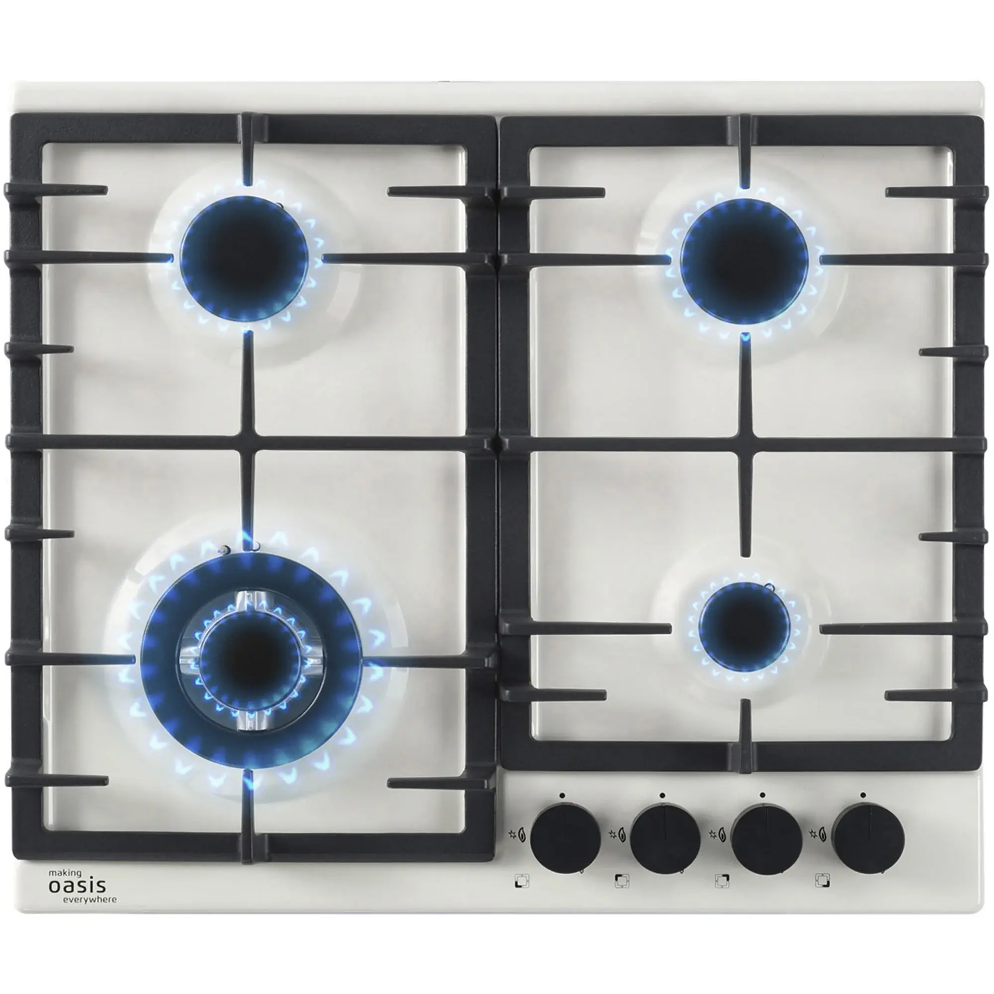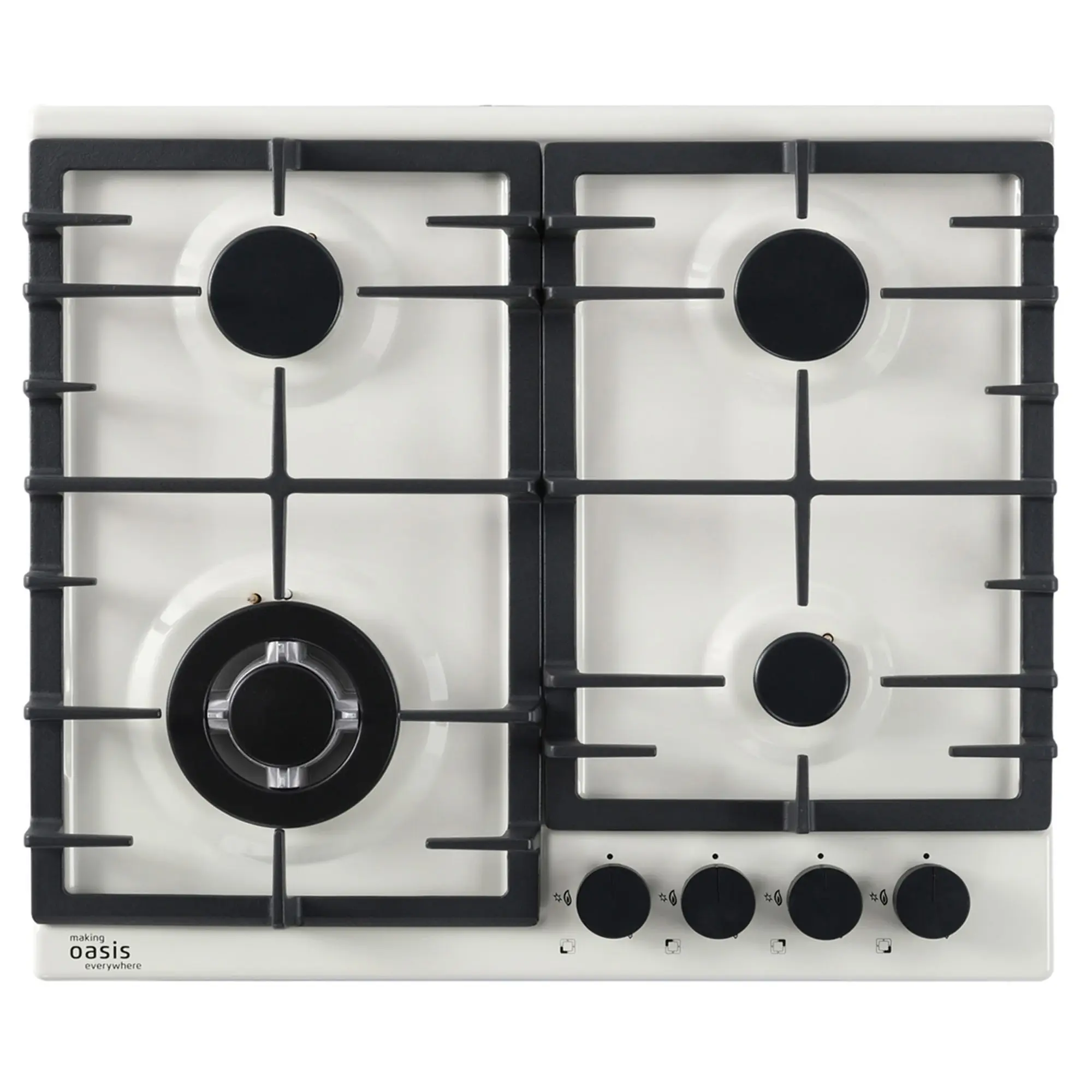 Цвет бежевый, металл, 2 чугунные решетки, автоматический розжиг, газ-контроль, 4 газовые конфорки, WOK-конфорка, ширина варочной поверхности 60см, Турция