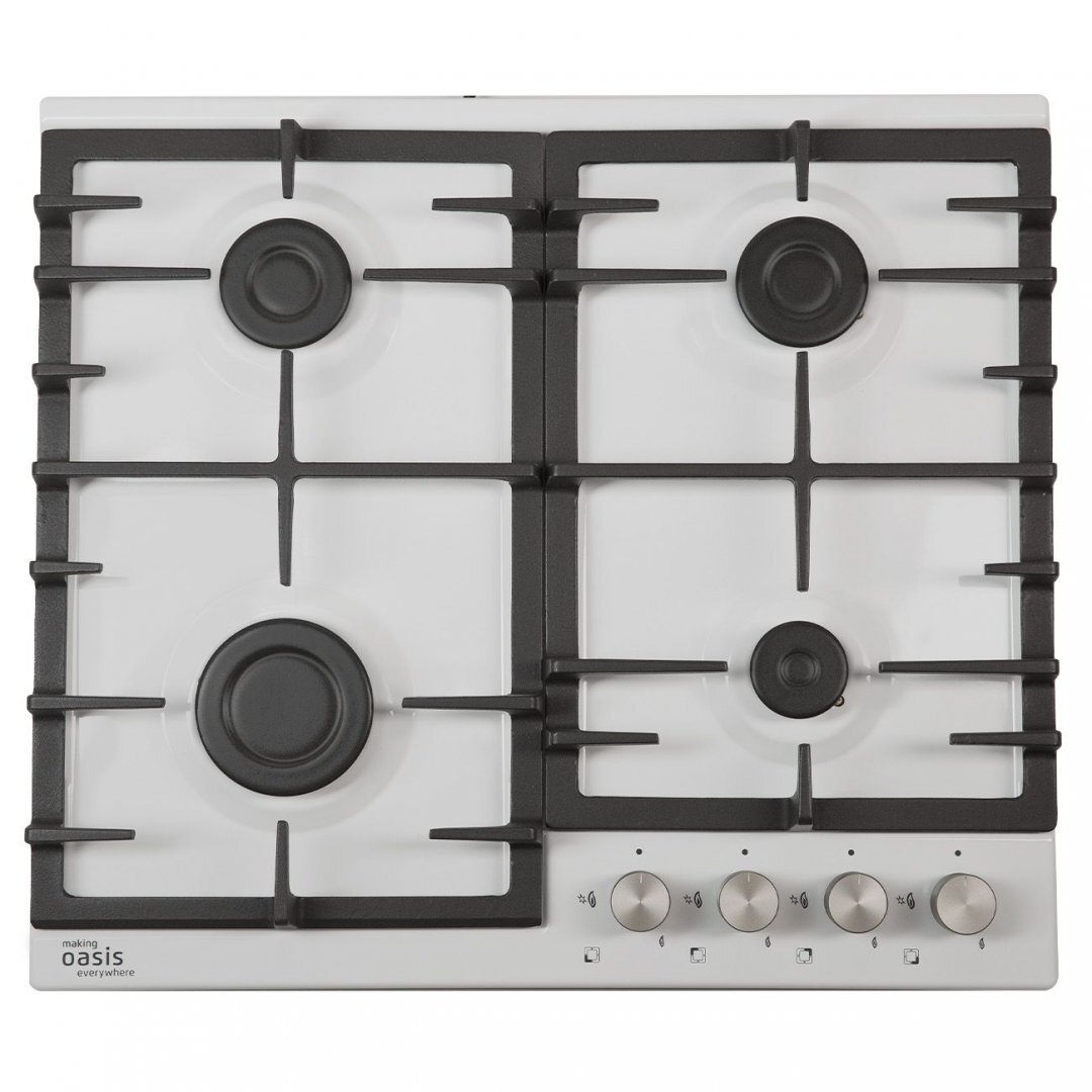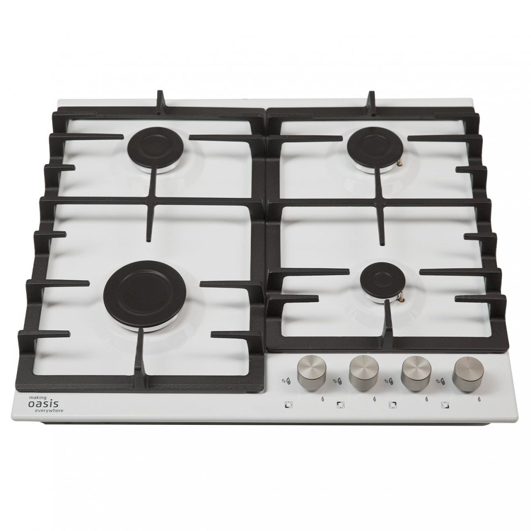 Цвет белый, металл, чугунная решетка, автоматический розжиг, газ-контроль, 4 газовые горелки, ширина варочной поверзности 60 см, Турция