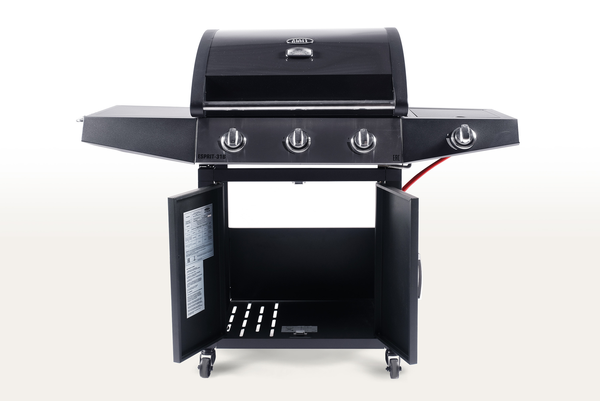 Качественный и функциональный газовый гриль Esprit-31B имеет в своем арсенале встроенную систему поджига, три трубчатые горелки из нержавеющей стали и чугунные решетки. Дополнительная решетка для подогрева позволит сохранить вашу пищу теплой, а дополнительная горелка, встроенная в боковой столик, позволит приготовить различные соусы. Для удобства перемещения гриль оснащен транспортировочными колесами.