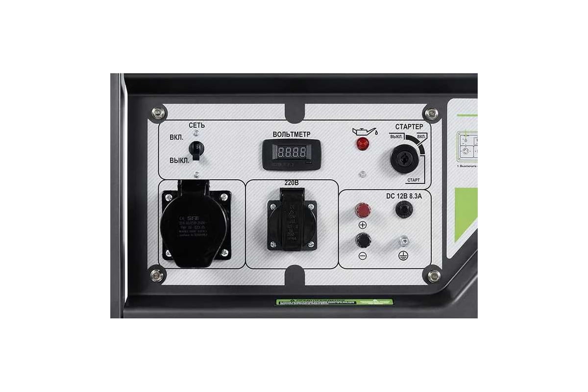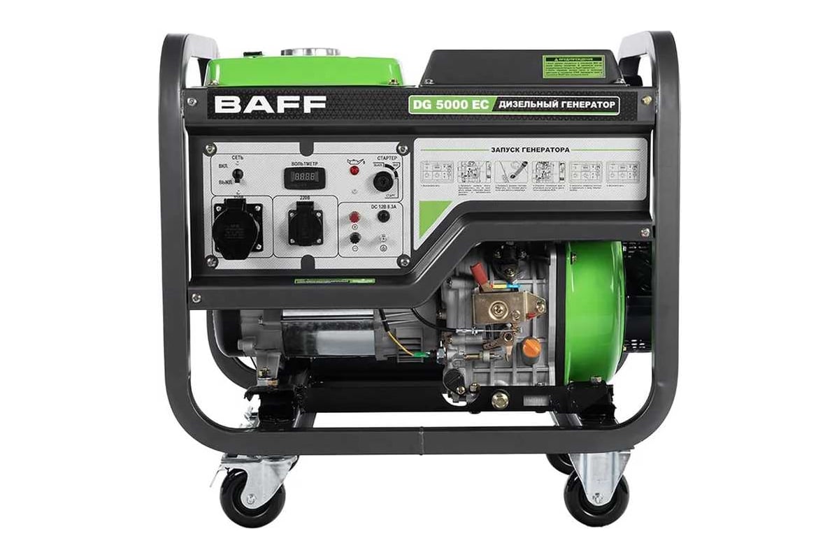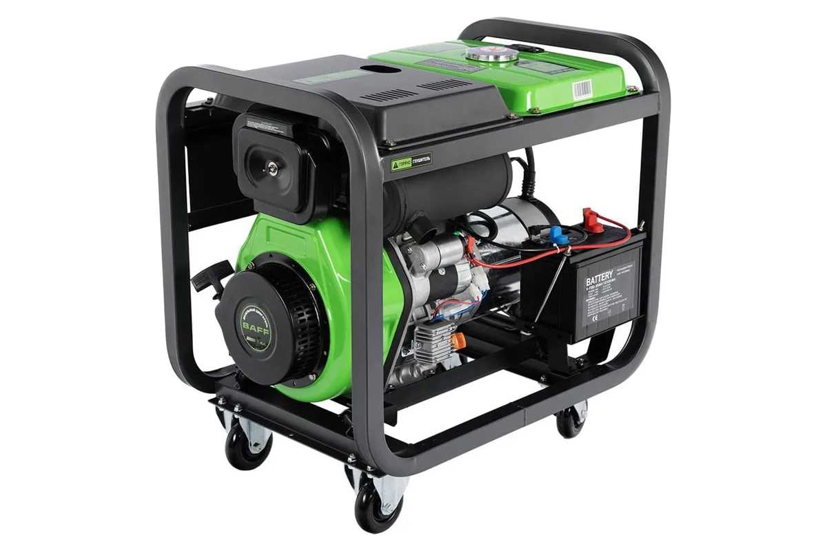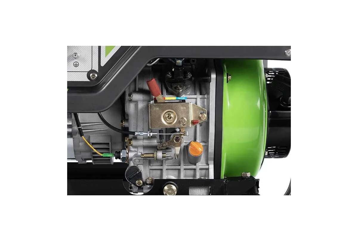 Электрогенератор дизельный с батареей, ручками и колесами, Максимальная мощность 5 кВт Номинальная мощность 4,5 кВт, Мощность двигателя 9 л.с., время автономной работы 7,5 ч. Тип двигателя: одноцилиндровый,вертикальный, четырехтактный, с воздушным охлаждением, с прямым впрыском. Объем двигателя 418 куб.см. Система зажигания: электрозапуск Объем топливного бака 12,5 л., уровень шума 80 дБ. Напряжение 220/110 В частота 50Гц