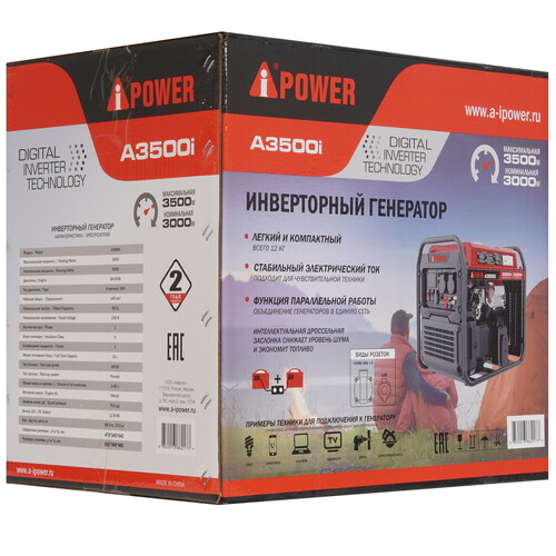 Инверторный бензиновый генератор отличается легкостью и компактностью. Идеальное решение для кемпинга и коротких выездов на природу. Такой генератор обеспечит электричеством портативную технику, телефоны, ноутбуки и небольшие колонки - которые чувствительны к постоянному току. . Низкий уровень шума не будет мешать отдыху.