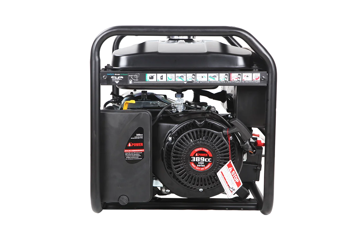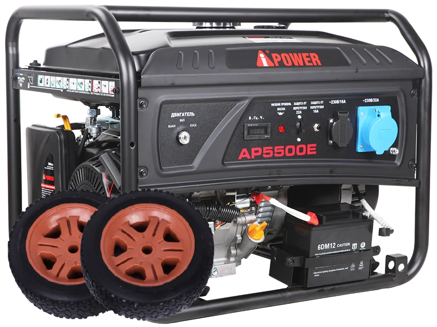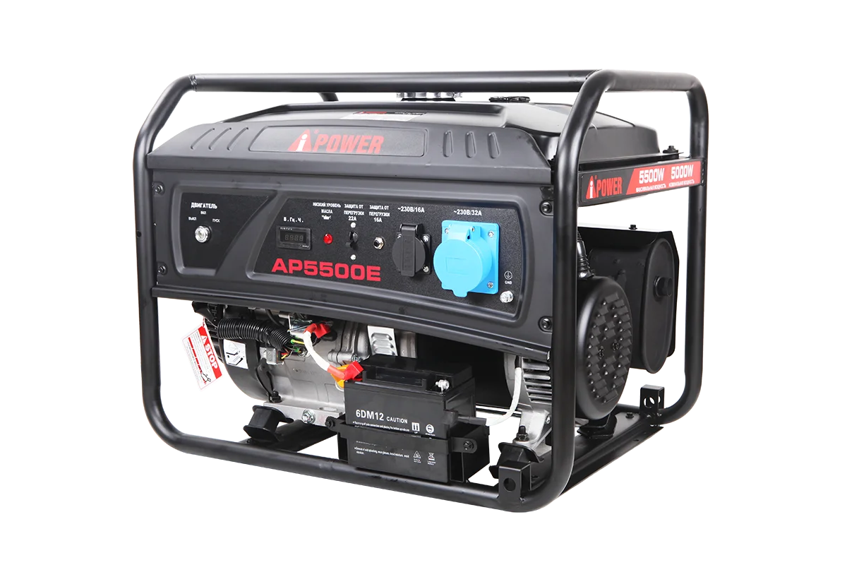 Бензиновый генератор A-iPower AP5500 станет Вашим надежным источником питания при отсутствии электроэнергии. Этот генератор с максимальной мощностью 5500 Вт и номинальной мощностью 5000 Вт работает до 6,9 часов при 100% нагрузке! A-iPower AP5500 оснащен компактным гильзованным 4-тактный OHV-двигателем объемом 389 куб. см с ручным стартером. На панели управления находится одна стандартная розетка 230В/16А и одна силовая розетка 230В/32А. Все розетки закрыты пластиковыми крышками, что защищает их от суровых погодных условий при использовании на улице. На цифровой дисплей в режиме реального времени выводятся сведения о работе генератора. A-iPower AP5500 оснащен автоматами защиты, которые при перегрузке предотвратят выход из строя и остановят генератор. Также система защиты предотвратит запуск двигателя при снижении уровня масла. А от внешних повреждений защитит мощная рама. На генератор A-iPower AP5500 распространяется 2-х летняя расширенная гарантия, при регистрации на сайте производителя. A-iPower – это американское качество и высочайшая надёжность.