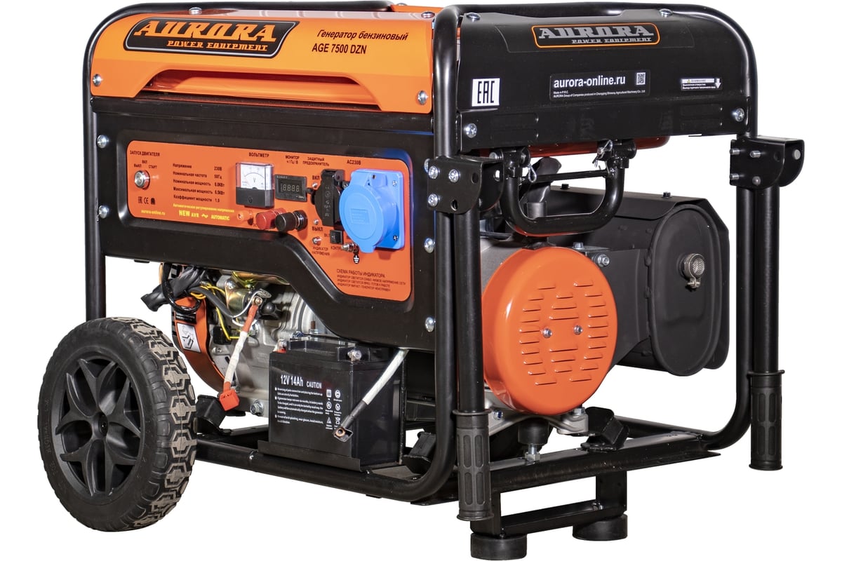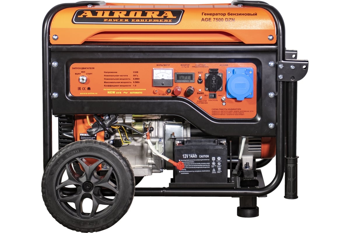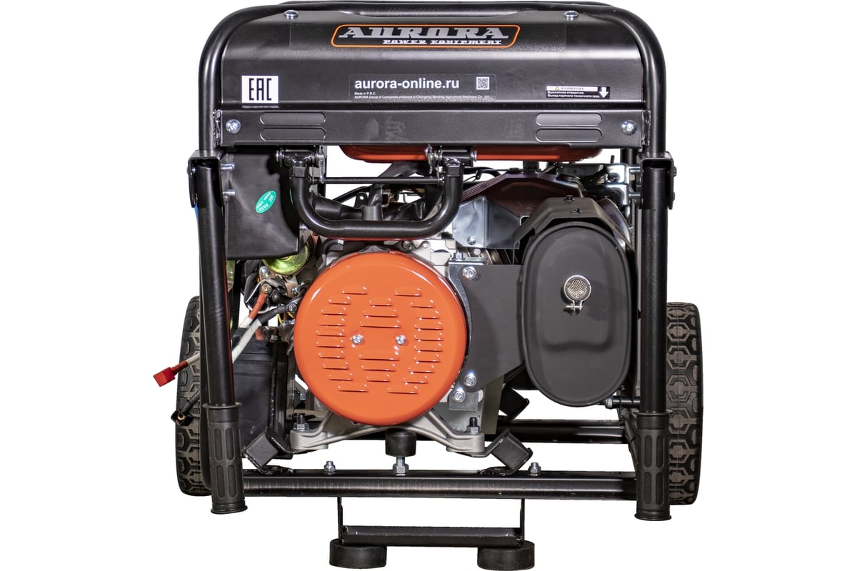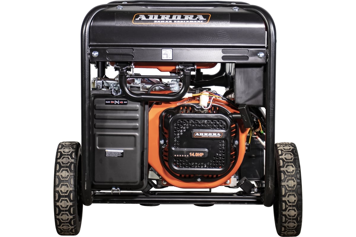 Генераторы предназначены для работы в загородных домах, в гаражах, на стройке, для обеспечения электричеством ремонтных бригад, а так же решения других задач, требующих автономного энергоснабжения. Особенности генераторов Аврора: синхронный генератор рассчитан на повышенную пусковую мощность и имеет высокий КПД 4-х тактный двигатель с нижним расположением распредвала не требует добавления масла в бензин лёгкий запуск при низких температурах (при условии верного подбора масла) высокий КПД мотора большой бак позволяет долгое время работать без дозаправки система стабилизации напряжения на выходе (NEW AVR) защита от перегрузок предохраняет от выхода из строя наиболее дорогие узлы и детали усиленная рама с дополнительными кожухами для защиты бензобака моторесурс более 1000 часов Вид сзади Одноцилиндровый 4-х тактный бензиновый двигатель с верхним расположением клапанов, который установлен на генераторе, является аналогом двигателя HONDA. Поршни мотора усилены чугунными гильзами, а значит, устройство прослужит своему хозяину много лет. Двигатели генераторов Aurora долговечны, обладают низким расходом масла на угар, экономят топливо и работают относительно тихо (74 Дб). OHV двигатель (с верхним расположением клапанов) очень надежен, долговечен, экономичен и менее шумный. Он устойчиво работает в широком диапазоне оборотов, эластичен. Эти свойства обусловлены оптимальной формой камеры сгорания двигателя. Распредвал расположен в блоке цилиндров и имеет шестеренчатый привод от коленчатого вала. Это самая надёжная и компактная конструкция двигателя. Нет ремня ГРМ, который может лопнуть или цепи, которая может перескочить и сбить фазы газораспределения. Новая усиленная рама генератора надёжно фиксирует все элементы конструкции, а кожух бензобака обеспечивает его дополнительную защиту. Стоит обратить особое внимание на наличие на всех генераторах Aurora блока NEW AVR (Automatic Voltage Regulator), который предназначен для стабилизации выходного напряжения при изменении оборотов двигателя. Данное устройство гарантирует стабильную работу подключенного к генератору оборудования. Ещё одним преимуществом генераторов Аврора перед конкурентами является медная обмотка ротора и статора устройства. Медь по сравнению с алюминием обладает меньшим удельным сопротивлением и лучшими показателями электропроводности. Это значит, что во время работы генератор с медными обмотками будет греться гораздо меньше конкурентов с алюминиевыми обмотками. В следствие меньшего нагрева меди повышается надежность изоляции и стойкость к неблагоприятным условиям окружающей среды: высокой температуре, влажности или запылённости. Так же стоит отметить значительно лучшие прочностные характеристики меди и её стойкость к окислению. Главной функцией системы автозапуска является автоматический запуск/отключение генератора путем контроля напряжения центральной питающей электросети. При отключении напряжения в центральной электросети блок автоматики обеспечивает автоматический запуск генератора. Через 8-10 секунд после запуска подается напряжение на потребители, подключенные к генератору. В случае возобновления питания в центральной электросети блок автоматики отключает напряжение, подаваемое генератором, от потребителей, после чего происходит остановка генератор