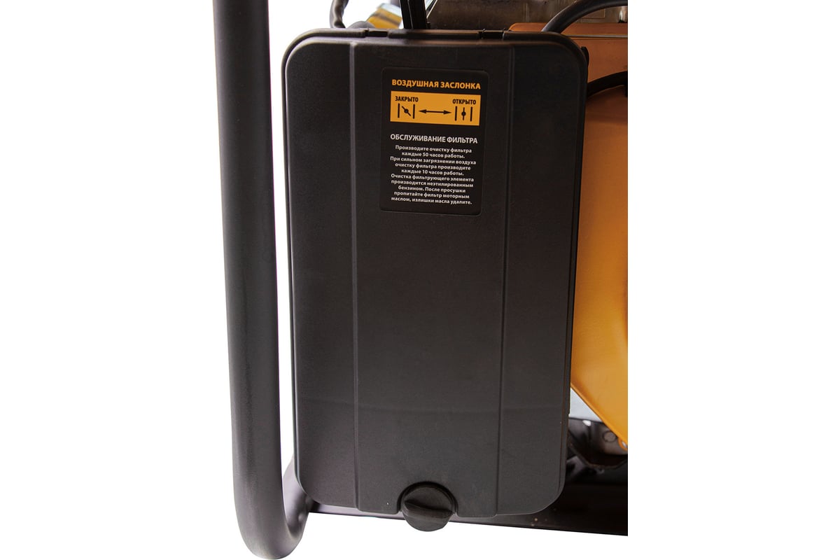 - Надежную защиту генератора при транспортировке и в условиях стройки обеспечивает усиленная рама с трубами 32 мм и толщиной стенок 1,5 мм.