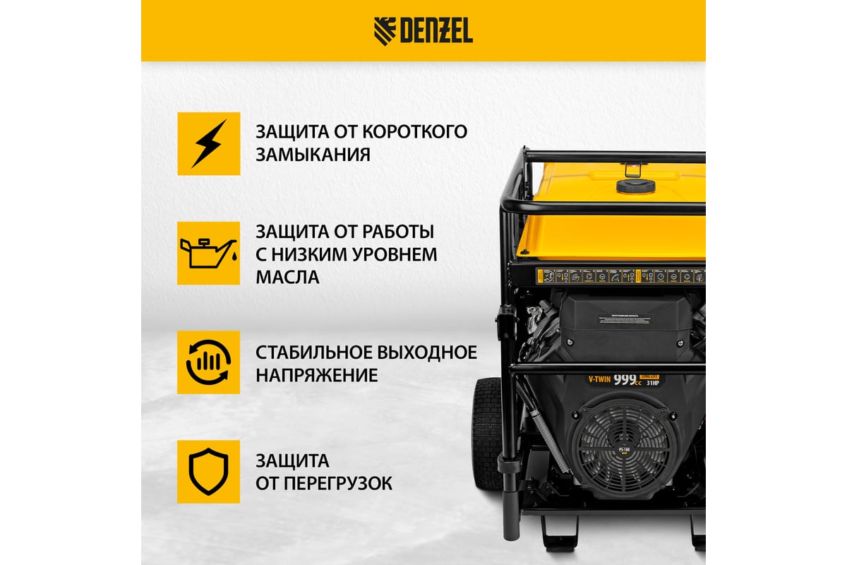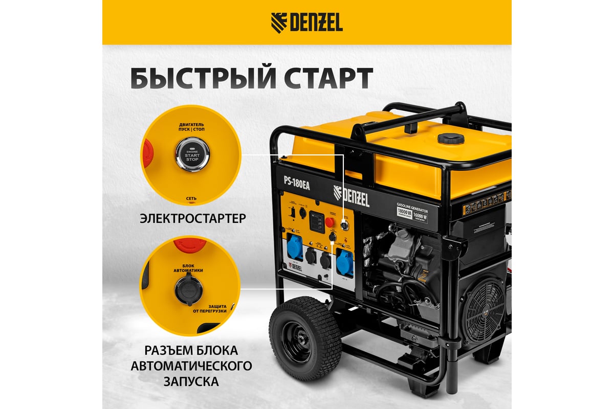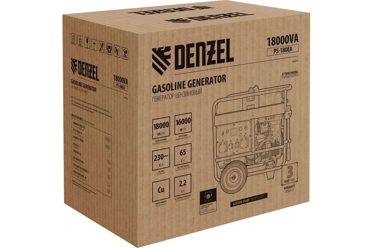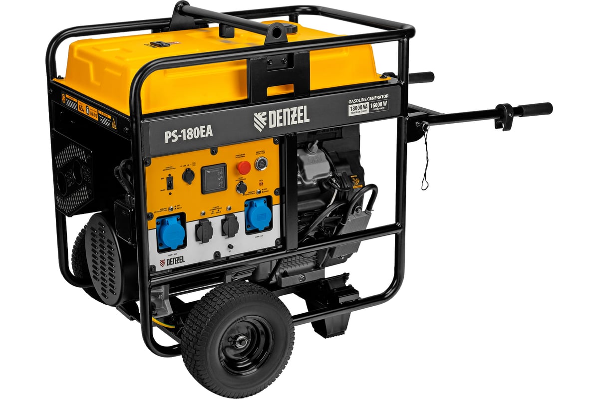 Бензиновый генератор максимальной мощностью 18 кВт, с баком объемом 65 л, разъемом ATS и электрическим стартером, поддерживает напряжение в сети 230 В. Предназначен для обеспечения питанием приборов и оборудования в случае отсутствия стационарной сети или перебоев в ее работе. Разъем USB 5 В позволяет заряжать мобильные устройства. Подключение потребителей производится при помощи 2-х розеток 220 В/16 А, а также 2-х силовых розеток 220 В/32 А.