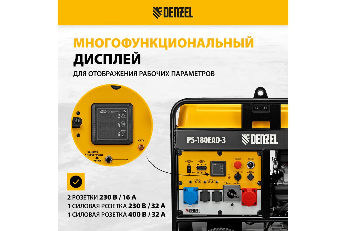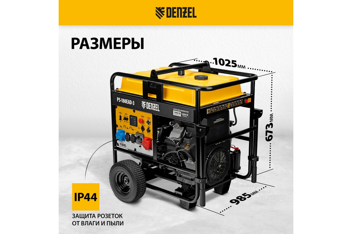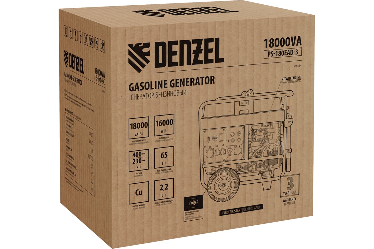 Бензиновый генератор максимальной мощностью 18 кВт, с баком объемом 65 л, разъемом ATS, переключателем режима и электрическим стартером, способен поддерживать напряжение в сети 230/400 В. Предназначен для обеспечения питанием приборов и оборудования в случае отсутствия стационарной сети или перебоев в ее работе. Подключение потребителей производится при помощи 2-х розеток 230 В/16 А, а также силовой розетки 220 В/32 А и розетки трехфазного тока 380 В/32 А. Разъем USB 5 В позволяет заряжать мобильные устройства.