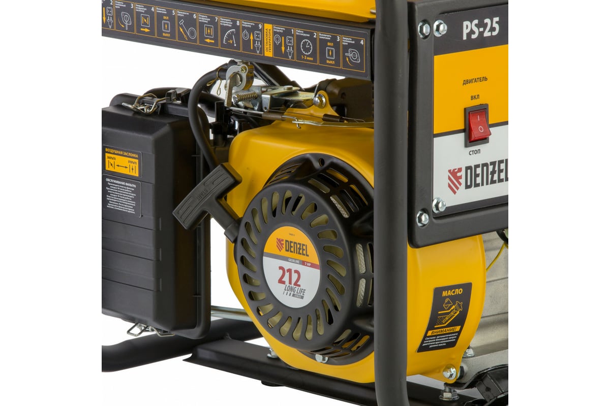 Бензиновый генератор DENZEL PS 25, 2,5 кВт, 230В, 15л, ручной стартер 946814 представляет собой агрегат бытового типа. Предназначен для использования в качестве альтернативного источника питания различной техники на даче, в частных домах при отключении центрального снабжения.