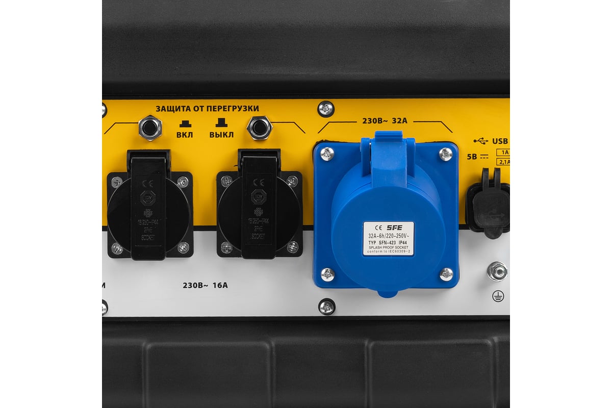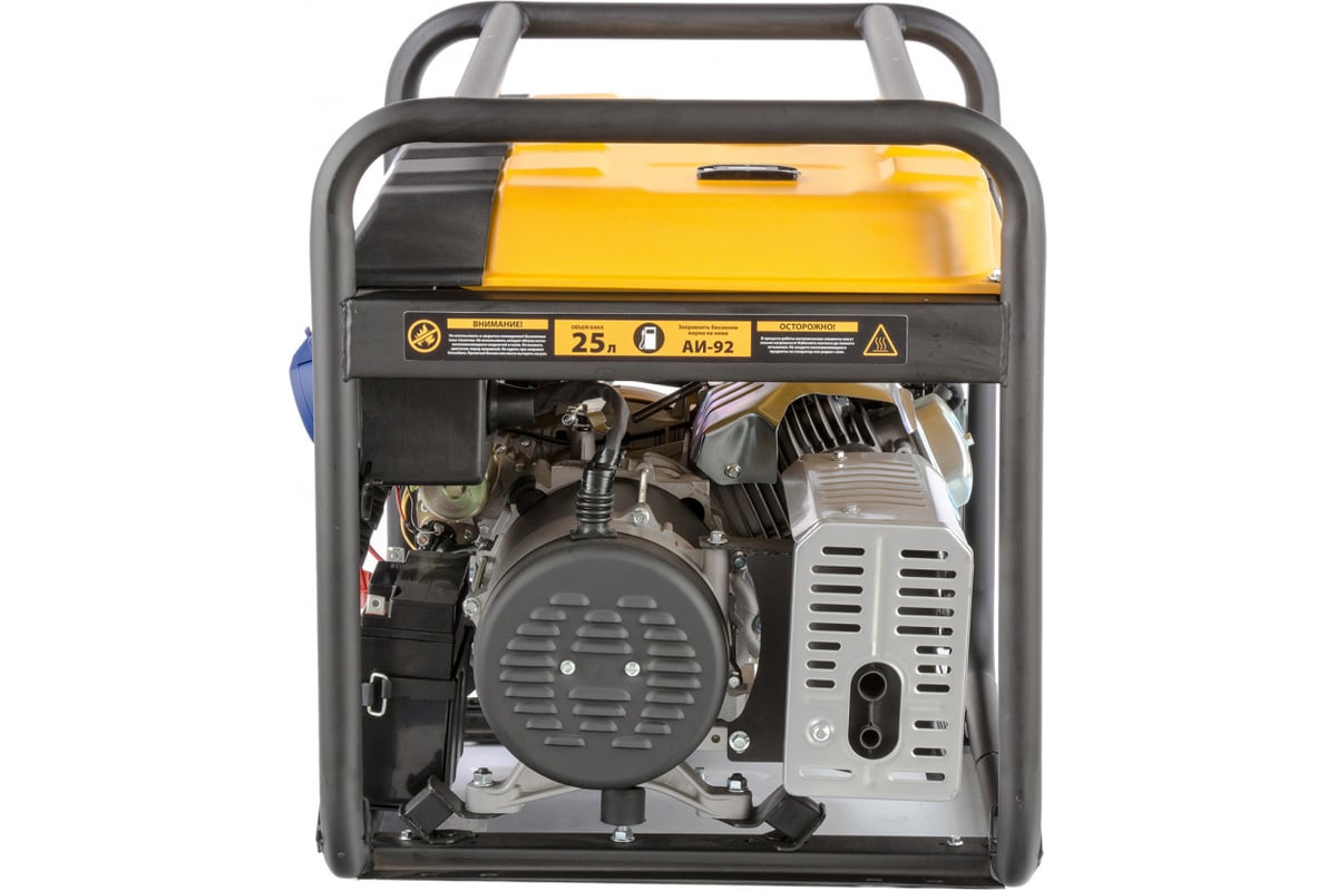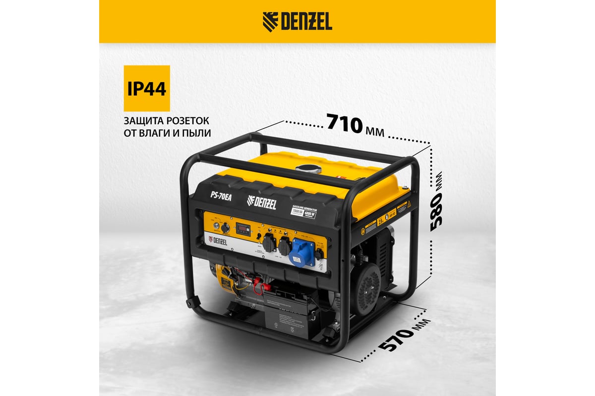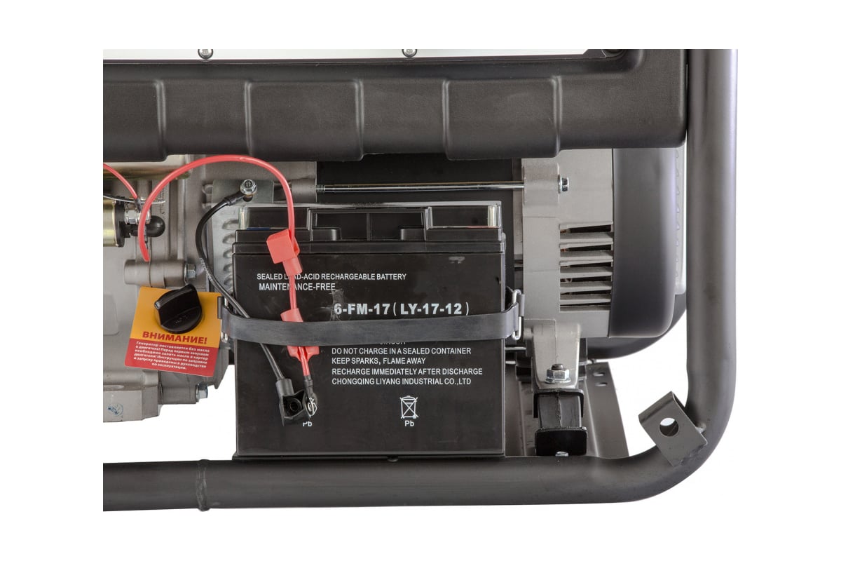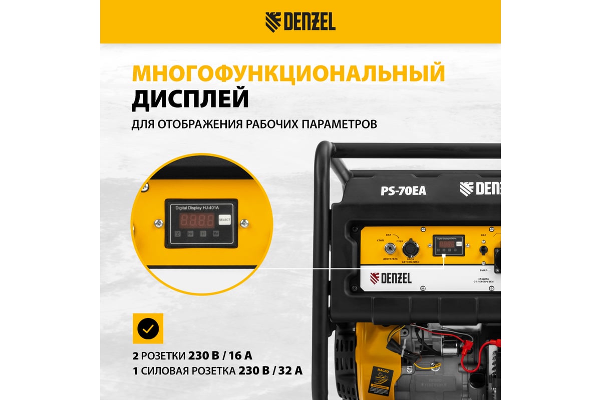 Предназначен для работы в загородном доме, на стройке, в гараже, для ремонтных бригад. Обеспечит приборы суммарной мощностью до 7 кВт. Большой бак позволяет работать без дозаправки до 10 часов. Удобное управление и система защиты от перегрузки, короткого замыкания и от запуска с низким уровнем масла сделают работу безопасной и комфортной. А детали из высококачественных материалов обеспечат надежность и долговечность. Преимущества Ручной, электрический и автоматический старт позволят легко включить генератор в любой ситуации. Двигатель защищен от работы при низком уровне масла - при падении ниже допустимой отметки генератор автоматически отключается. Усиленная конструкция рамы диаметром 32мм защитит от повреждений. С помощью цифрового дисплея легко отслеживать напряжение, частоту, моточасы и наличие масла. Лаконичная и интуитивно понятная панель управления. Каждая розетка имеет индивидуальный предохранитель. Силовая розетка 230В/32А позволяет снять полную мощность с генератора. Генератор поставляется в комплекте с аккумулятором для электрического старта. Имеет возможность подключения блока автоматического запуска арт.946714 для обеспечения полноценного автоматического резервного электроснабжения (в комплект не входит). Есть возможность установки транспортировочного комплекта (колеса, ручки) арт. 946725 , который значительно облегчает транспортировку генератора (приобретается отдельно). AVR сглаживает скачки напряжения при подключении и отключении оборудования. Уверенную работу генератора обеспечивает двигатель с высоким ресурсом DENZEL LONG LIFE. Его детали имеют высокую точность обработки. А улучшенная облегченная конструкция поршня, чугунная гильза, стальные распредвал и коленвал значительно продлевают срок службы. Медная обмотка альтернатора улучшает качество работы и повышает ресурс работы. Карбюратор от лидирующих производителей Китая. Свеча зажигания BOSCH. Гарантия 3 года!