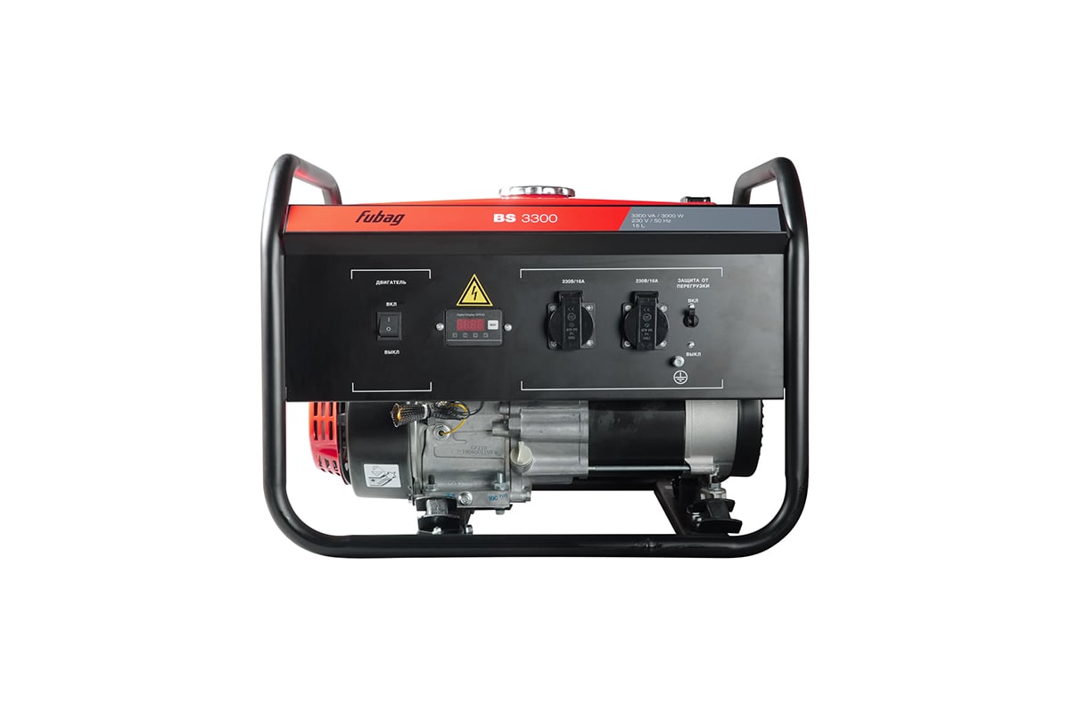 Бензиновый генератор FUBAG BS 3300 - это надежная и простая в освоении электростанция мощностью 3 кВт. Модель является одной из самых популярных в линейке бренда и подходит для решения широкого спектра задач - от электроснабжения небольшого домохозяйства до работы с различными инструментами и агрегатами. Экономичность Одно из главных преимуществ оборудования - экономный расход топлива, который обеспечивает высокую степень автономности. Благодаря компоновке двигателя с верхним расположением клапанов и топливному баку на 15 литров бензиновый генератор может бесперебойно работать до 13 часов при нагрузке ¾. Надежная конструкция Двигатель профессионального класса. Прочная стальная рама защищает все узлы при эксплуатации в экстремальных условиях. Системы защиты от перегрузки, короткого замыкания. Автоматическое отключение при недостаточном уровне масла. Современная схема электрики Бензогенератор FUBAG BS 3300 оснащен синхронным альтернатором с медными обмотками. В сравнении с алюминиевыми аналогами такое решение гораздо меньше нагревается и отличается лучшей токоотдачей, что положительно сказывается на качестве выходных параметров. Система стабилизации напряжения AVR минимизирует перепады генерируемого тока, которые могут возникнуть из-за подключения нового потребителя или изменения температуры. Эта функция необходима для работы с чувствительными приборами - газовыми котлами, бытовой техникой и др. Две розетки На передней панели FUBAG BS 3300 расположены две евророзетки 230В/16А, что упрощает подключение нескольких потребителей. Оба вывода защищены подпружиненными крышками от попадания пыли, грязи и воды. Многофункциональный дисплей Электростанция оборудована ярким дисплеем, при помощи которого можно удобно контролировать основные параметры выходного тока. Кроме того, пользователь всегда может увидеть показатель наработки в моточасах, эта информация необходима для своевременного проведения техобслуживания. Купить бензиновый генератор FUBAG BS 3300, а также получить консультацию специалистов об особенностях и преимуществах данного изделия вы можете в нашем магазине, связавшись с нами по телефону или непосредственно через сайт – с помощью формы обратной связи или воспользовавшись чатом с онлайн-консультантом.
