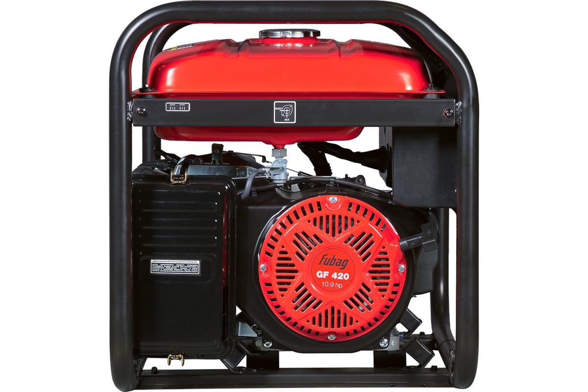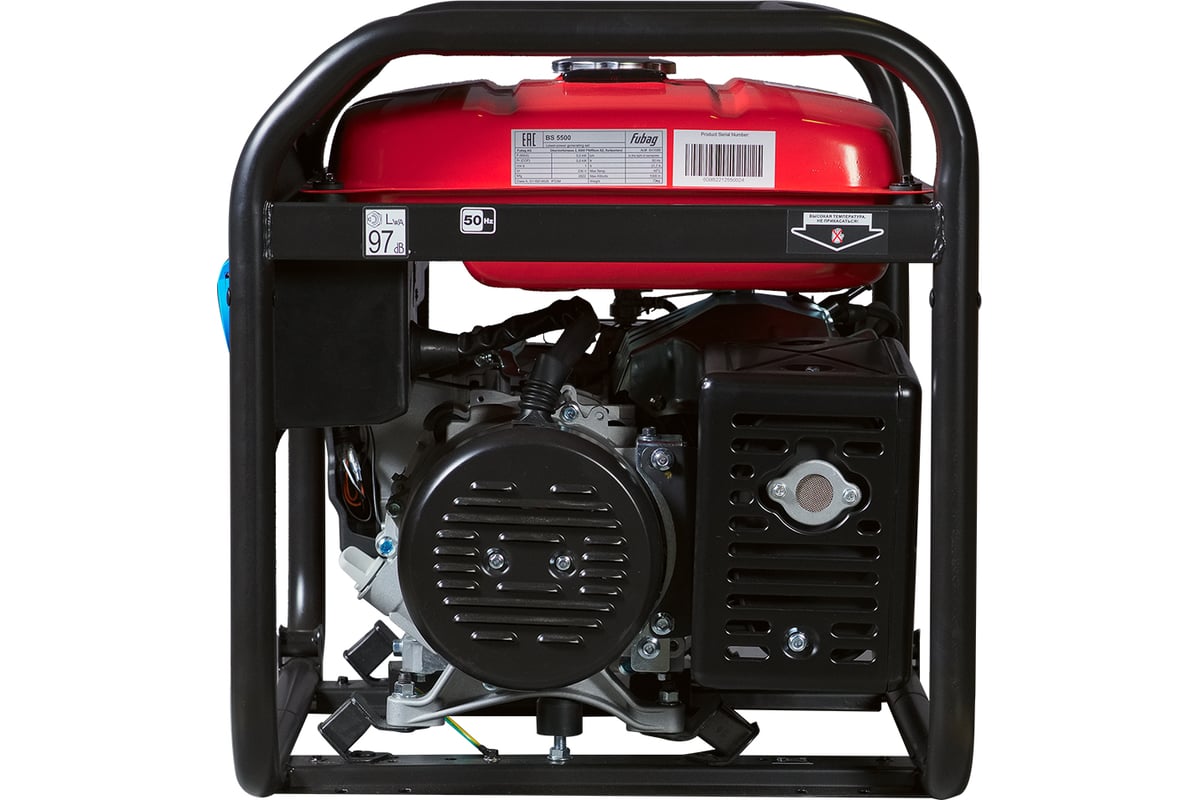 Бензогенератор Fubag BS 5500 Надежная, неприхотливая бензиновая электростанция Fubag BS 5500, номинальной мощностью 5,0 кВт, подходит для организации мобильного электроснабжения, а также для передвижных ремонтных бригад, торговых точек, мастерских или загородного дома. Высокий ресурс работы бензинового генератора FUBAG BS 5500 обеспечивает профессиональный OHV-двигатель FUBAG с верхним расположением клапанов. Синхронный альтернатор с медными обмотками ротора и статора оснащен системой регулировки выходного напряжения (AVR), который гарантирует стабильное выходное напряжение и частоту тока. Двигатель и альтернатор установлены на раму через демпферы, позволяющие значительно гасить вибрации во время работы и перемещения генератора, увеличивая долговечность конструкции. Надежный сварной топливный бак объемом 25л оснащен указателем уровня топлива и фильтром-сеткой. Панель управления электростанции Fubag BS 5500 оснащена тремя пыле/влагозащищенными розетками 2х220В/16А и 1х220В/32А для подключения мощных потребителей. На розетки установлена индивидуальная защита от короткого замыкания и перегрузки. Мультифункциональный цифровой дисплей позволят контролировать выходное напряжение и частоту. Отслеживать межсервисные интервалы и не забыть про очередное техобслуживание поможет счетчик моточасов, установленный на бензогенератор BS 5500. Встроенный индикатор низкого уровня масла предупредит о его недостаточном объеме, а датчик уровня масла отключит генератор. Усиленная толстостенная сварная рама, диаметром 32 мм, и запатентованный дизайн электростанций Fubag сохраняют целостность конструкции даже при эксплуатации в самых тяжелых условиях, а также защищают важные узлы от попадания грязи и падения посторонних предметов. Рама бензогенератора Fubag BS 5500 подготовлена под установку комплекта для транспортировки. При необходимости можно установить колеса и ручки, набор поставляется опционально. Купить бензиновый генератор Fubag BS 5500 можно в официальном интернет-магазине Fubag. Основные преимущества бензинового генератора Fubag BS 5500: • Профессиональный OHV-двигатель FUBAG • Медная обмотка альтернатора • Система регулировки выходного напряжения (AVR) • Защита от короткого замыкания, перегрузки и низкого уровня масла • Многофункциональный цифровой дисплей отображает напряжение, частоту, отработанные моточасы, индикатор уровня масла. • 3 розетки с индивидуальными предохранителями: 2х220В/16А, 1х220В/32А • Указатель уровня топлива • Усиленная рама 32 мм • Рама подготовлена под установку транспортного комплекта (опция) Ваши преимущества при покупке бензинового генератора Fubag BS 5500: • Полный ассортимент аксессуаров и расходных материалов • Самая полная информация о товаре • Большая сеть сервисных центров • 2 года бесплатного сервисного обслуживания • Доставляем оборудование Fubag в минимальные сроки • Квалифицированная онлайн консультация на сайте и по телефону горячей линии +74956600300 • Возможность скачать инструкцию по эксплуатации на сайте • Видеообзор бензиновой электростанции Fubag BS 5500 • Только оригинальная продукция В комплект c электростанцией Fubag BS 5500 входит: - вилка 220В/16А – 2шт - вилка 220В/32А – 1 шт - набор инструментов: гаечный ключ 12/14 – 1 шт, гаечный ключ 14/17 – 1 шт, отвертка – 1 шт - свечной ключ– 1 шт - масляная воронка – 1 шт - комплект опор и крепежей - 4 шт - инструкци
