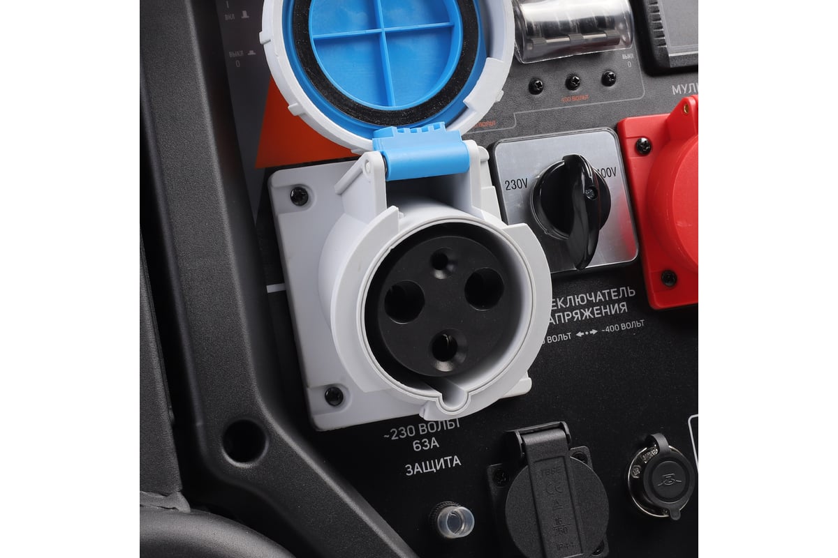 - Вилки 230В: 1х16А, 1х63А 400В: 1х32А
