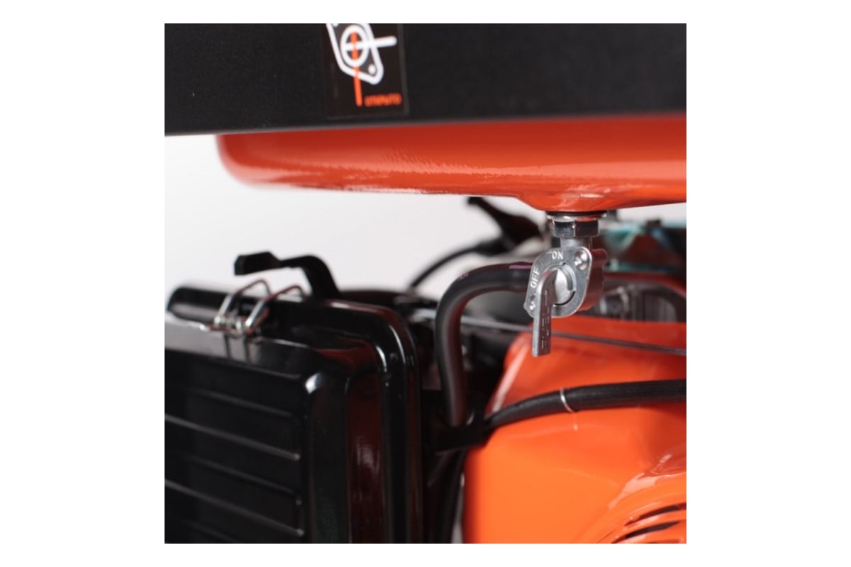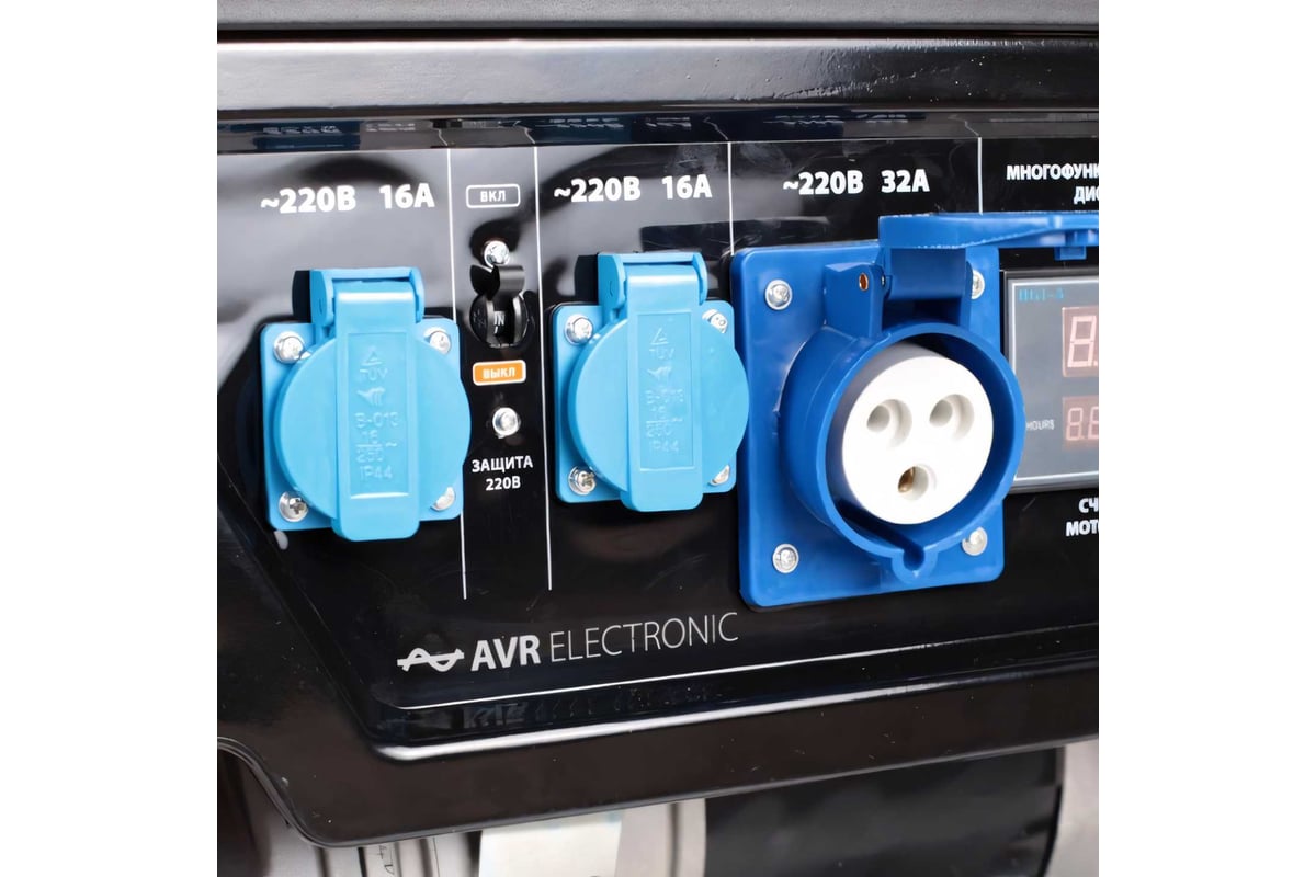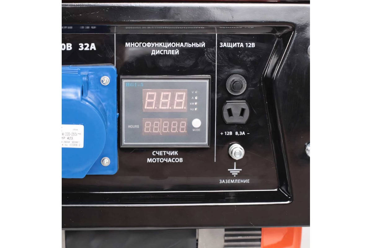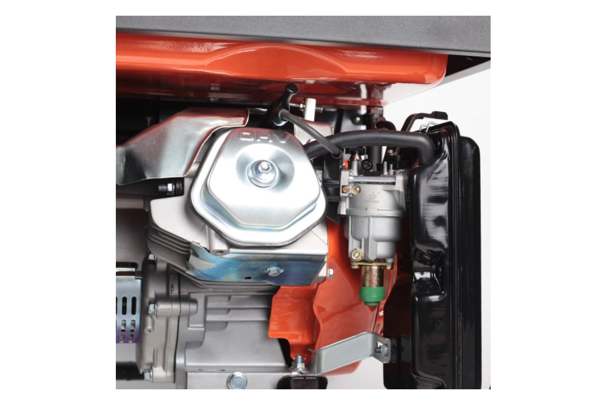 Бензиновый генератор оснащается двигателем с верхним расположением клапанов для увеличения срока службы изделия. Также на модель можно установить комплект для транспортировки: пару рукояток и колеса на раме. Изделие подойдет для аварийного питания небольших потребителей уровня сварочных аппаратов, станков или электроинструмента. Для отслеживания уровня масла и топлива используется цифровой мультидисплей. Он же отображает мощность, напряжение, ток и частоту. Дополнительный выход на 12 В используется для подзарядки автомобильного аккумулятора.