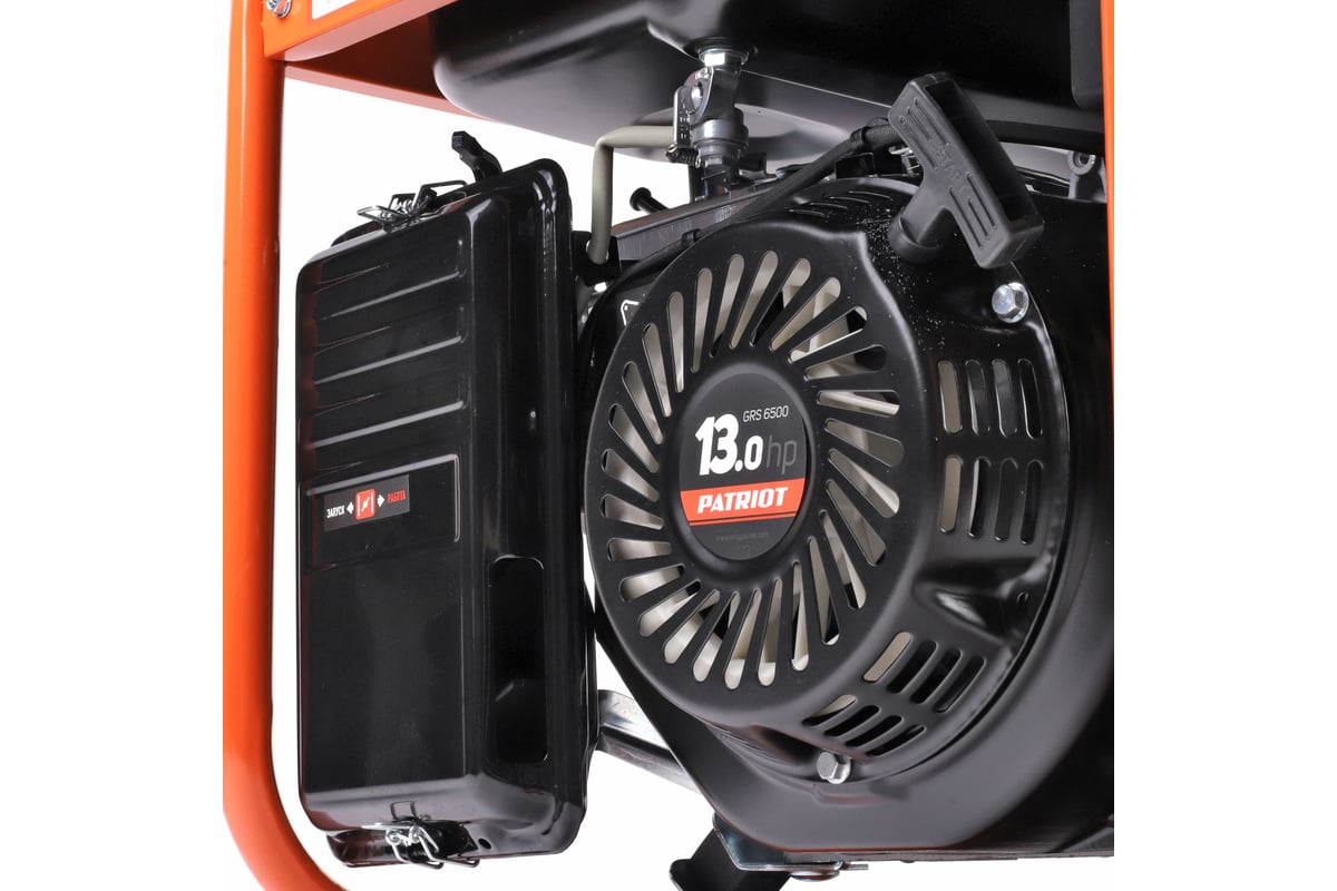 Выбирайте генератор Patriot GRS 6500 — надежное решение для энергоснабжения вашего дома, дачи или стройплощадки! Благодаря продуманной конструкции и высококачественным материалам он прослужит долго и безотказно. Удобство использования обеспечивают эргономичная панель управления и интуитивно понятные элементы контроля. Прочные материалы корпуса гарантируют защиту от повреждений, а удобная комплектация включает все необходимое для быстрой подготовки к работе. Выберите уверенность и стабильность вместе с Patriot!Генератор применяется в качестве аварийного или автономного источника электроэнергии для питания мощных бытовых электроприборов, электроинструмента, небольших станков, сварочных аппаратов. Оптимальное соотношение мощности двигателя и электрогенератора обеспечивает стабильную работу на номинальной мощности. Оснащен двигателем с верхним расположением клапанов [OHV], что значительно увеличивает ресурс, снижает выхлоп и уровень шума. Датчик контроля масла исключает запуск и работу генератора при отсутствии или низком уровне масла в картере. Синхронный электрогенератор с системой автоматической регулировки обеспечивает стабильное выходное напряжение и частоту тока. Выход 12 вольт позволяет подзарядить автомобильный аккумулятор в экстренном случае. Усиленная передняя панель с утопленными элементами управления снижает риск механических повреждений.