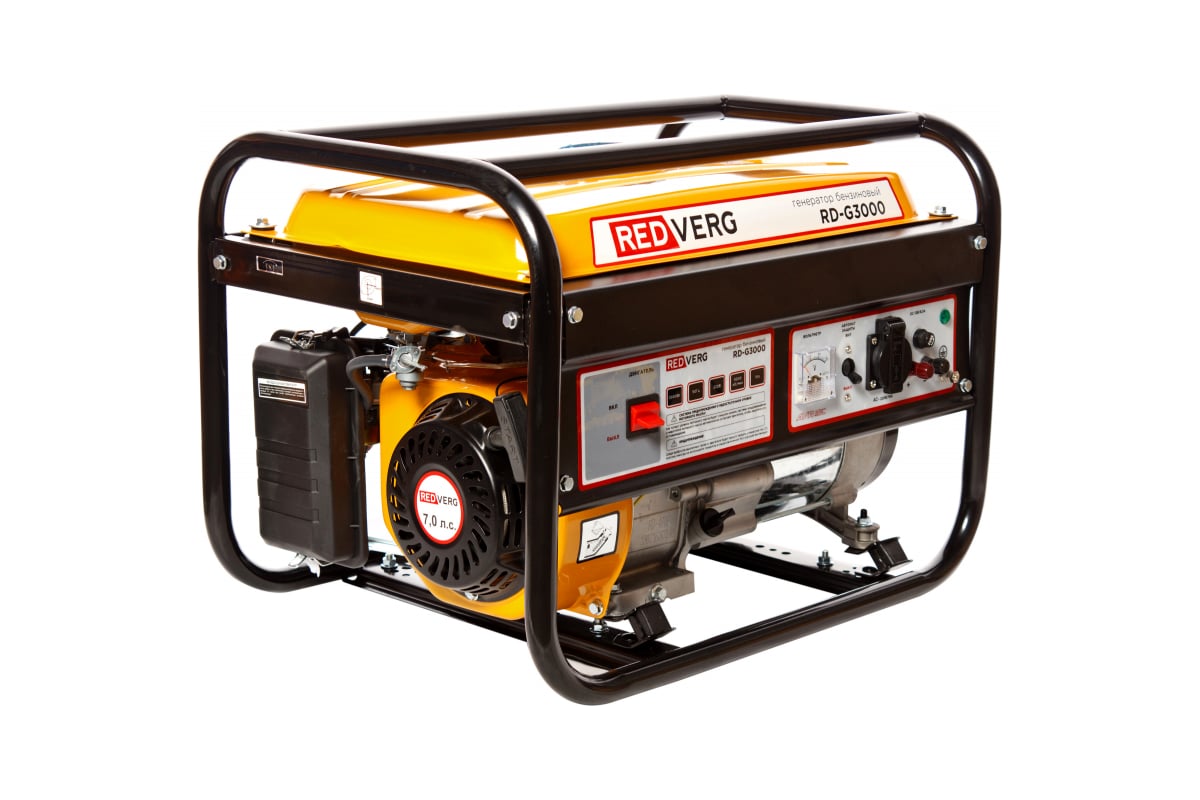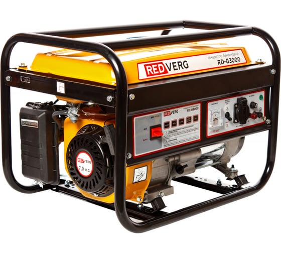 Бензиновый генератор -это мощный и надёжный источник электроэнергии, предназначенный для использования в качестве резервного источника питания. Подходит для обеспечения в быту электричеством различных чувствительных электронных и бытовых приборов, для подключения отопительных систем, компьютеров, оргтехники, осветительных приборов, и т.д. Генератор бензиновый REDVERG RD-G3000 - легкий и компактный. Он помещается в багажник легковушки. При том максимальная мощность у двигателя недетская — 3 кВт. 4х-тактный двигатель с небольшим расходом бензина может беспрерывно работать до 9 часов. Объем бака для топлива 15 литров. Алюминиевая обмотка альтернатора обладает легким весом, устойчив к коррозии и истиранию. Генератор REDVERG оснащен ручным стартером для легкого запуска двигателя. Воздушное охлаждение гарантирует продолжительную работу без риска перегрева. Усиленная металлическая рама обеспечивает надёжность и долговечность конструкции, а также защищает внутренние элементы от механических повреждений. Большой топливный бак (15 л) обеспечивает длительное время работы генератора без необходимости частой заправки. Вольтметр дает возможность визуально контролировать напряжение под нагрузкой. Выход постоянного тока — 12В/8,3А, можно заряжать аккумуляторы автомобиля. Уровень шума в 1,5 ниже, чем у аналогичных моделей. Бензиновый генератор REDVERG RD-G3000-это надежное и мощное устройство, которое обеспечит вас электроэнергией в любых условиях. Особенности: Двигатель с верхним расположением клапанов OHV Ручной стартер для легкого запуска двигателя Низкий уровень шума Усиленная металлическая рама Выход постоянного тока — 12В/8,3А, можно заряжать аккумуляторы автомобиля Алюминиевая обмотка альтернатора Мощный 4-х тактный двигатель Простота обслуживания Воздушное охлаждение Встроенный вольтметр