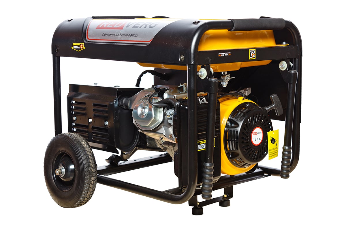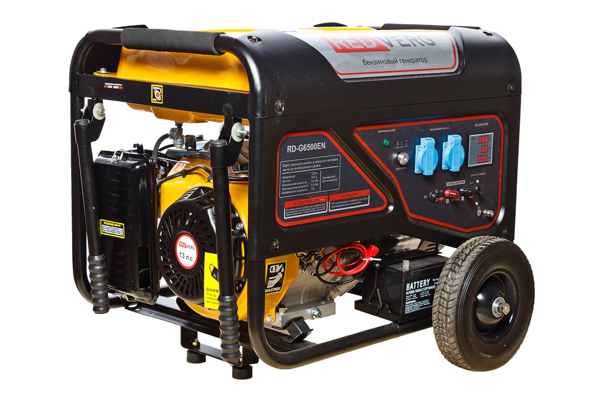 Бензиновый генератор REDVERG RD-G6500EN 5024811 представляет собой компактный и мощный силовой агрегат с четырехтактным двигателем. Техника предназначена для эксплуатации на пикнике, на даче, в гараже, на рыбалке, стройке в качестве резервного источника питания.