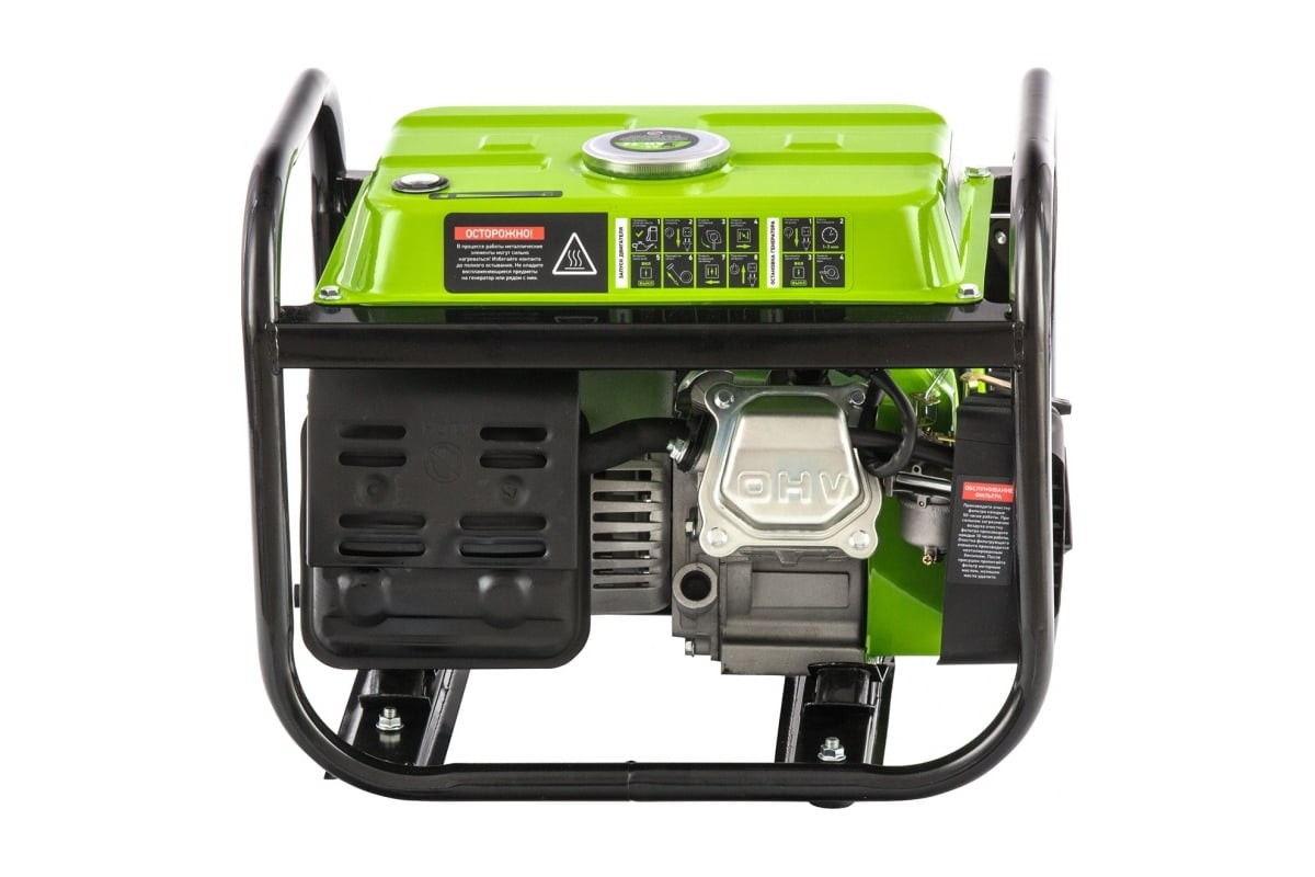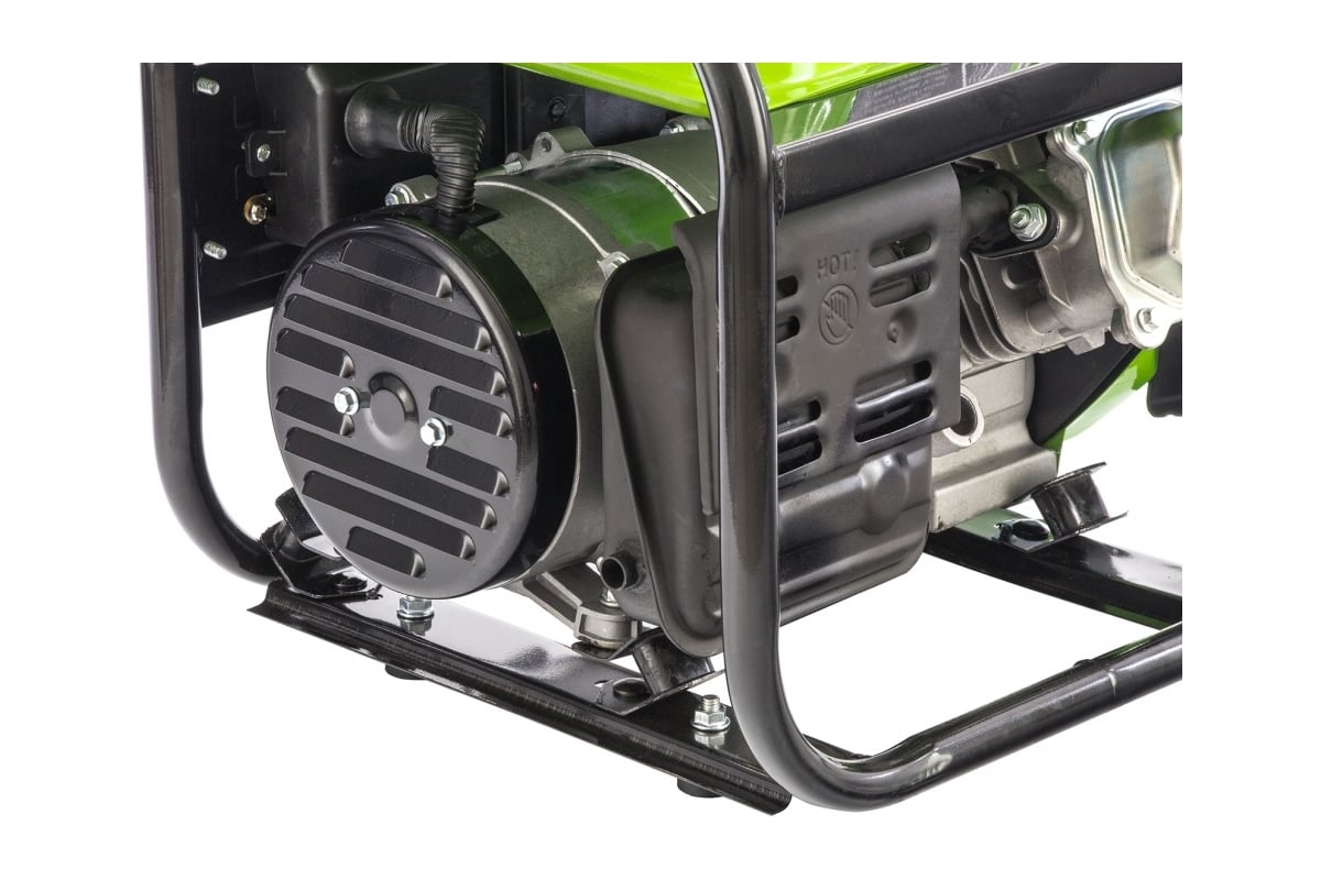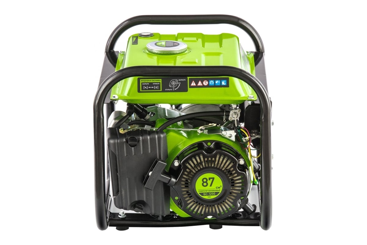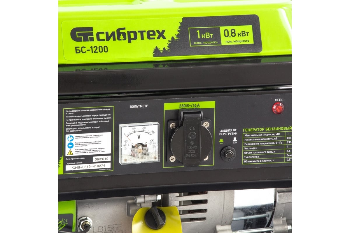 Компактный, легкий 22,9 кг и недорогой генератор Сибртех БС-1200 мощностью 1 кВт рассчитан на подключение одного инструмента с высоким пусковым током, такого как дрель, перфоратор, углошлифовальная машина. Также его можно использовать в качестве простой резервной системы электроснабжения на природе, в мастерской или на даче. Вырабатываемой мощности в 800 Вт хватит для одновременного обеспечения электричеством 4 ламп накаливания, компьютера и роутера. Топливный бак 5,5 л обеспечит работу до 6 часов без дозаправки. Преимущества Блок AVR обеспечивает работу без скачков напряжения, а значит к генератору можно подключать даже чувствительную технику. Индикатор подключения к сети обеспечивает безопасность, исключая случайный запуск. Удобно контролировать напряжение в сети благодаря вольтметру. Легко отслеживать уровень бензина благодаря индикатору топлива. Комплексная система защиты от работы при низком уровне масла, от перегрузки и короткого замыкания продлевает срок службы генератора. Удобное и простое управление - все элементы контроля расположены на передней панели. Система воздушного охлаждения обеспечивает эффективный отвод тепла для стабильной работы двигателя. Генератор заключен в стальную защитную раму, которая также является и ручками для переноски.