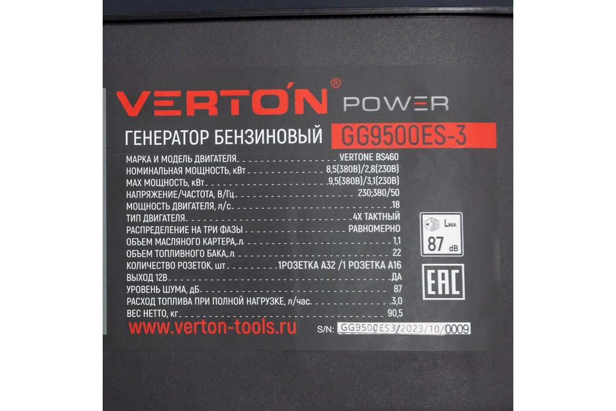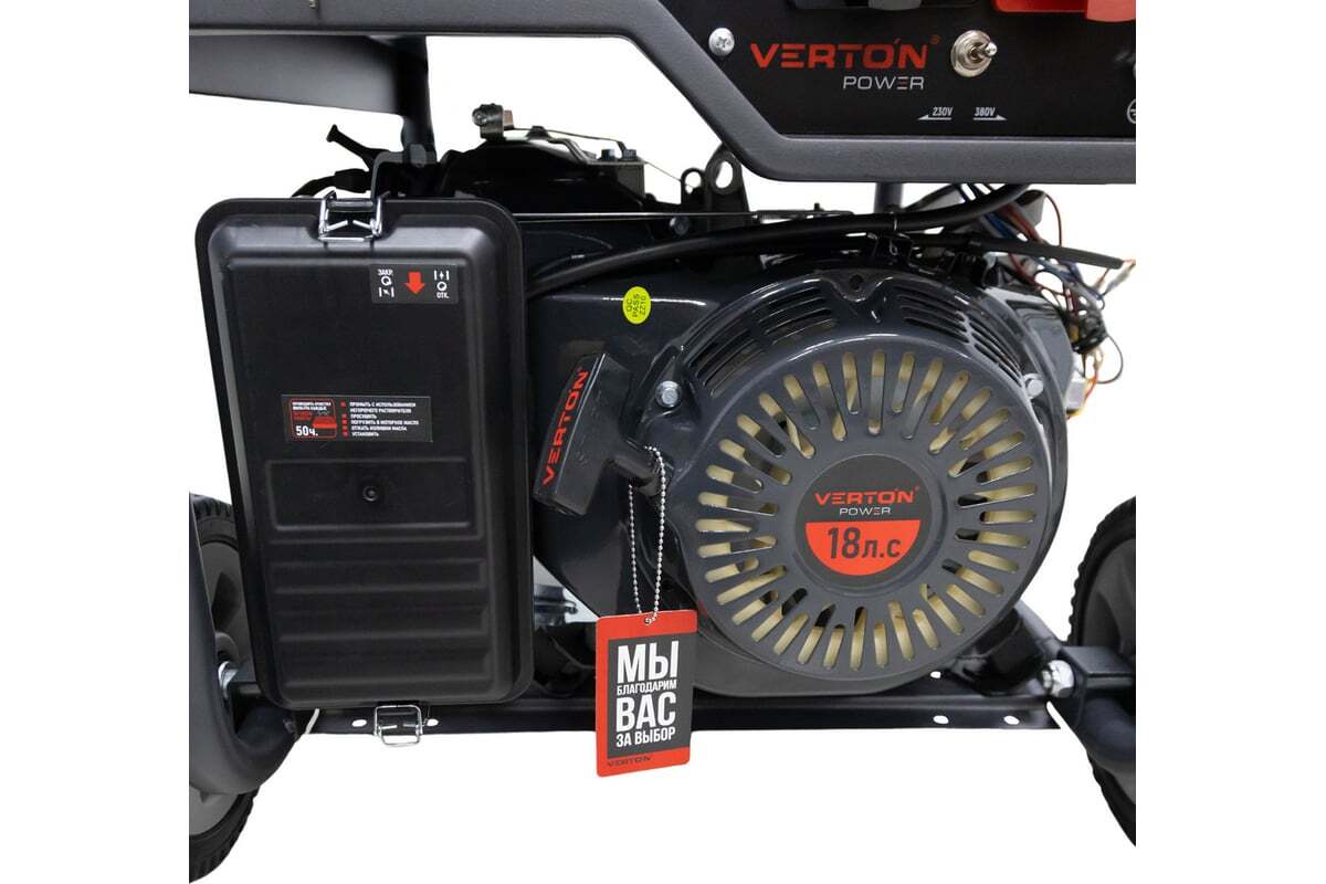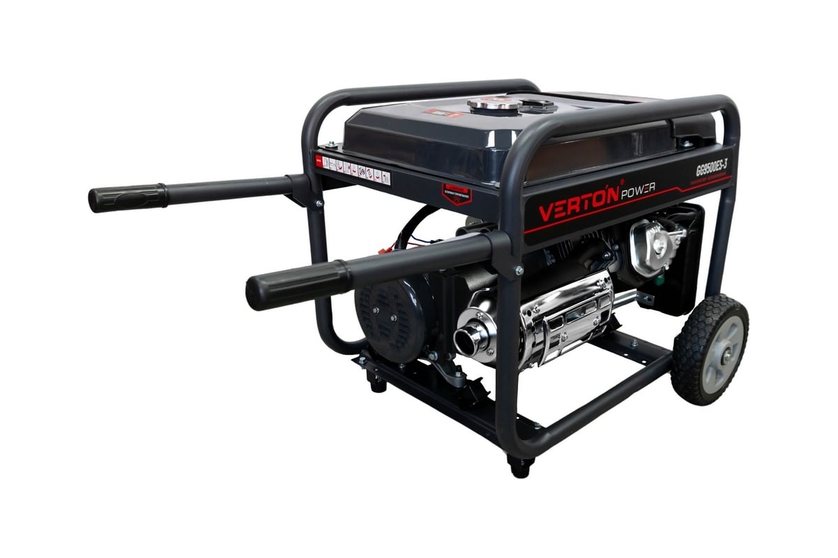 Генератор бензиновые VERTON POWER оснащен надежным двигателем с увеличенным ресурсом, медной обмоткой альтернатора и электро-запуском, транспортировочными рукоятками и обрезиненными колесами. Предназначен для выработки электроэнергии мощностью до 9,5 кВт. Обеспечивает стабильную работу в качестве резервного или главного источника питания, при подключении как однофазных, так и трехфазных потребителей.