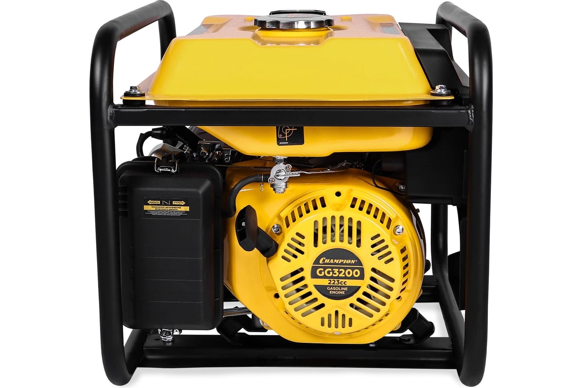 Генератор Champion GG3200 используется для снабжения электричеством приборов мощностью до 3,5 кВт. Высокое номинальное напряжение при небольших габаритах достигается благодаря медной обмотке ротора и статора, а также усовершенствованному блоку AVR. Имеет открытое исполнение, вследствие чего эффективно отводит тепло от рабочих частей агрегата.