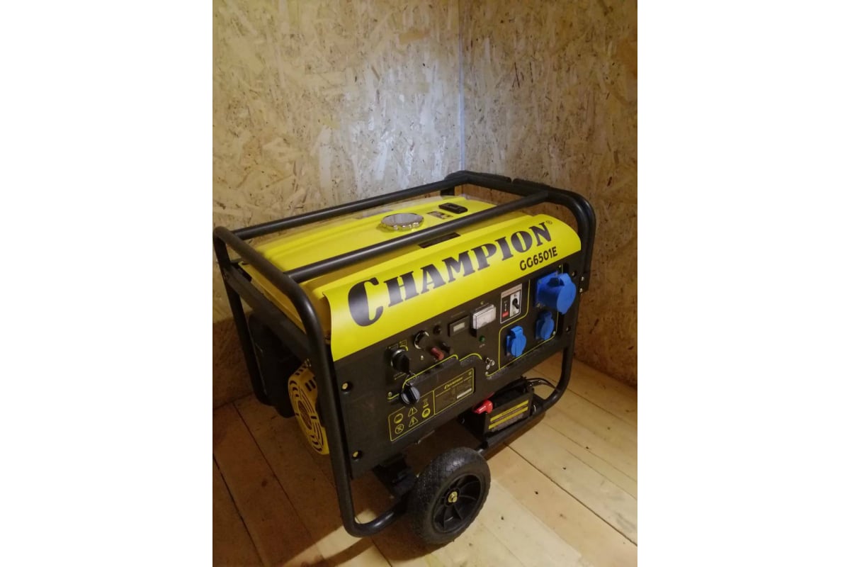 Генератор +ATS Champion GG6501E оснащается вместительным топливным баком, что в совокупности с низким расходом топлива обеспечивает возможность продолжительной работы без дозаправки. Медная обмотка статора и щеточного ротора способствует надежности и долговечности. Для маневренности и легкости транспортировки в конструкции модели предусматривается наличие больших колес и складных рукоятей. Металлическая силовая рама защищает оборудование от повреждений при механических воздействиях. На панели управления располагаются стрелочный вольтметр для контроля напряжения и три розетки для быстрого подключения потребителей.