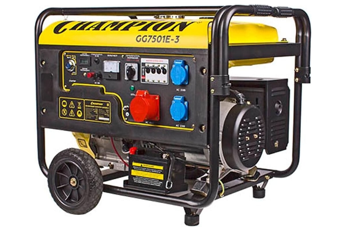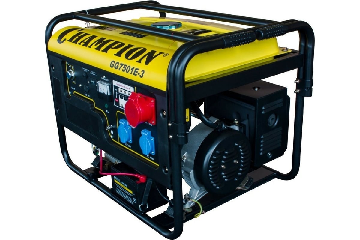 Генератор CHAMPION GG7501E-3 предназначен для резервного электроснабжения при отсутствии возможности питания от электросети, часто используется для строительных работ. Наличие воздухоочистителя в конструкции продлевает эксплуатационный срок агрегата. Прочная рама и дополнительные верхние перекладины предохраняют аппарат от ударов и механических повреждений. Генератор не требует специального сервисного обслуживания.