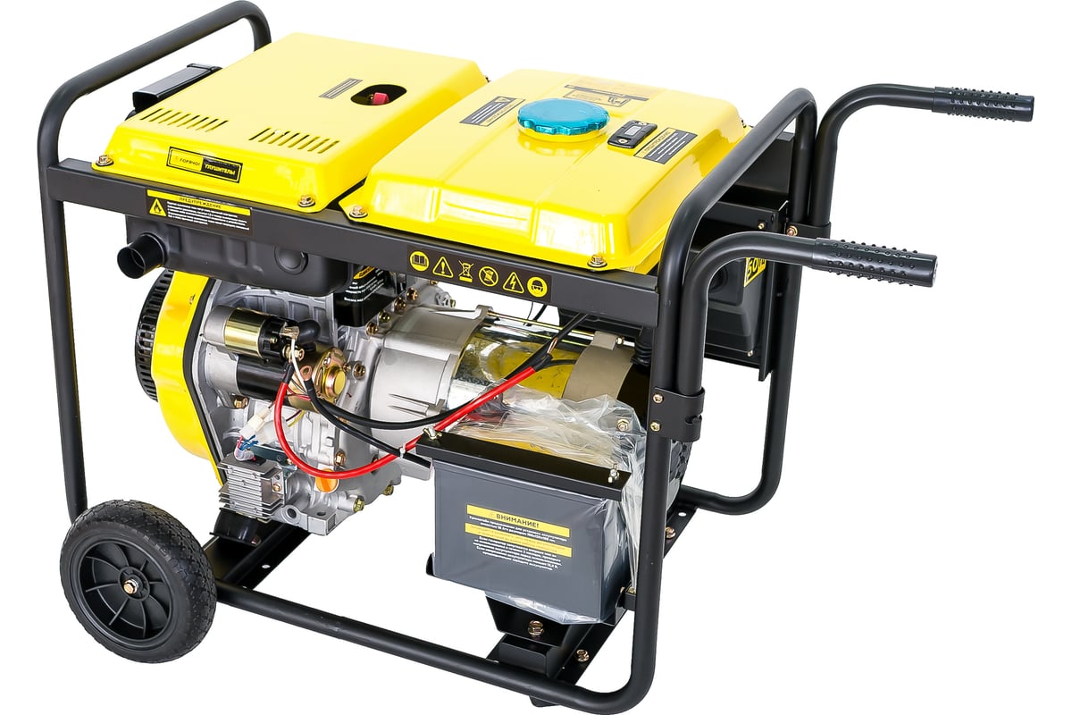 Дизельный генератор Champion DG6501E оснащается двумя розетками 220 В и выходом на 12 В, что дает возможность запитать оборудование и технику суммарной мощностью до 5 кВт. Модель является незаменимым помощником на строительной площадке, в загородном доме или гараже. Большие обрезиненные колеса и рукоятки гарантируют легкость транспортировки агрегата. Специальные опоры служат для дополнительной устойчивости во время работы. Все элементы управления (вольтметр, замок зажигания, выключатель сети) располагаются в одном месте и способствуют удобству эксплуатации. Рама надежно защищает узлы и детали генератора от механических повреждений. Одноцилиндровый двигатель с воздушным охлаждением обеспечивает стабильную работу агрегата.