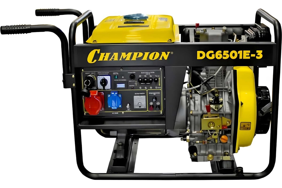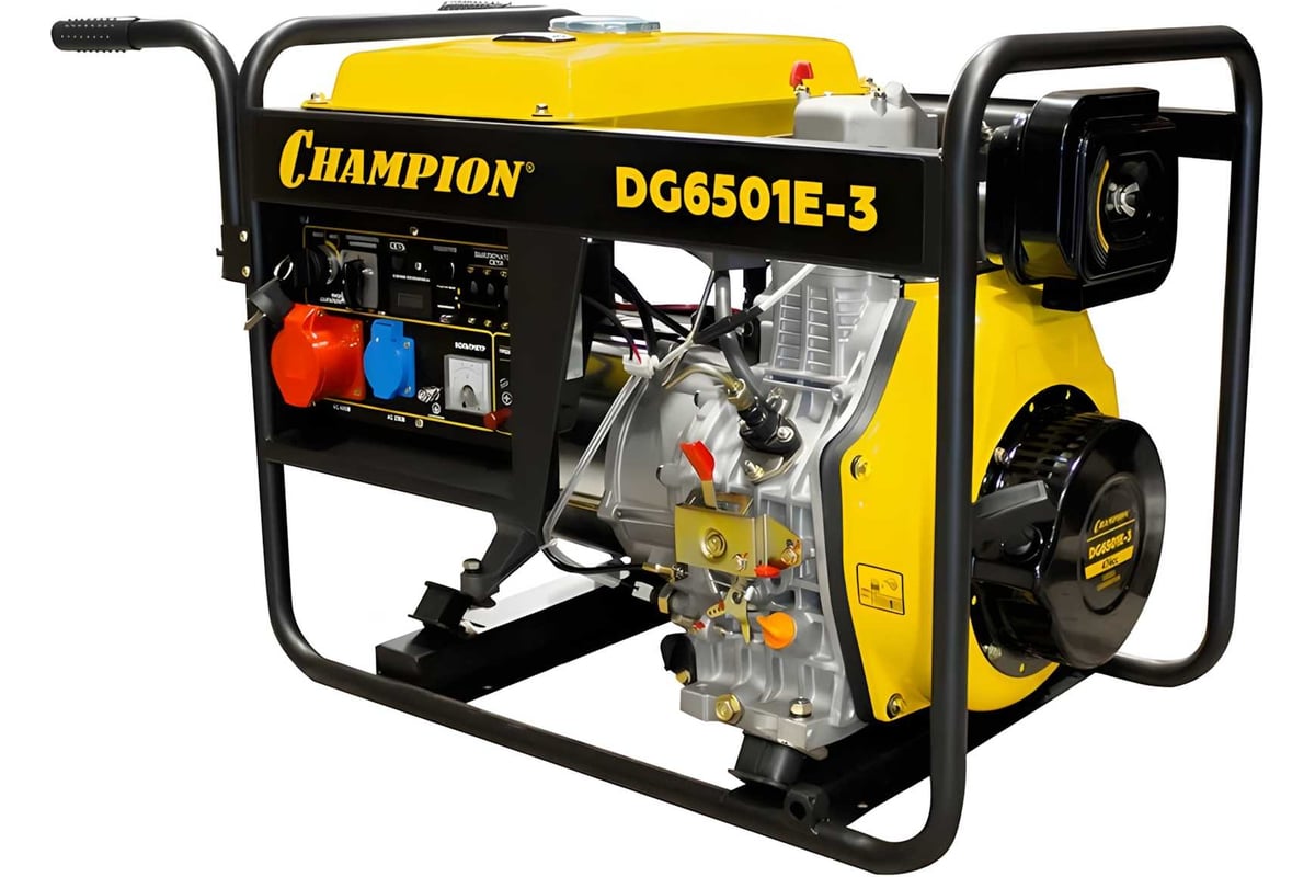Дизельный генератор CHAMPION DG6501E-3 представляет собой универсальное мобильное оборудование, которое служит для энергоснабжения различных устройств и приборов. Благодаря медной обмотке ротора и статора модель отличается надежностью и долговечностью. Металлическая силовая рама защищает рабочие узлы агрегата от повреждений при механических воздействиях. На панели управления располагаются стрелочный вольтметр для контроля напряжения и две розетки для быстрого подключения потребителей. Электростартер гарантирует легкий запуск аппарата в любое время года.