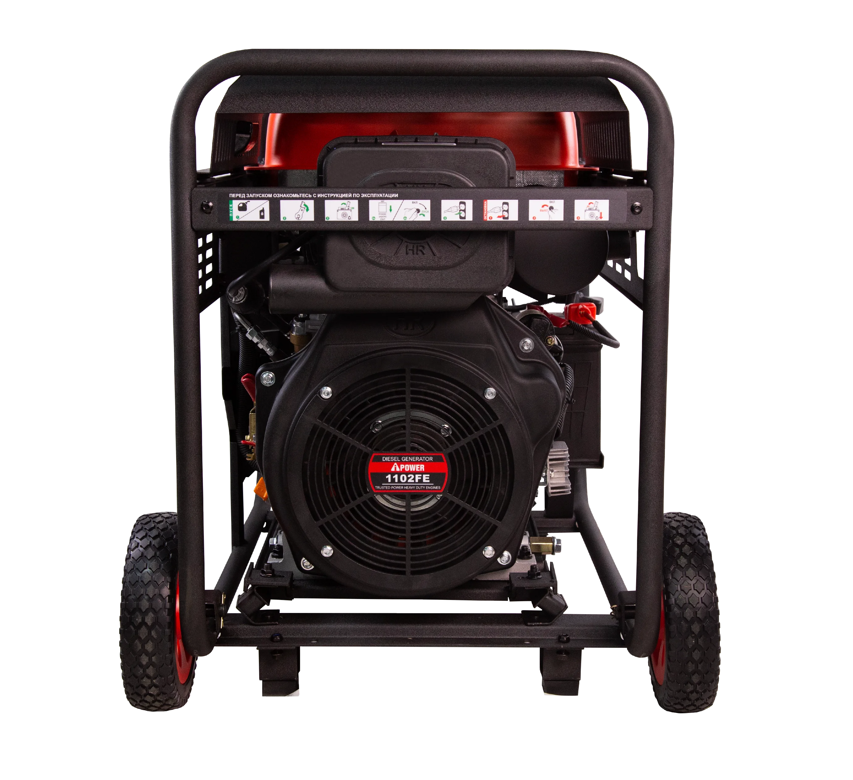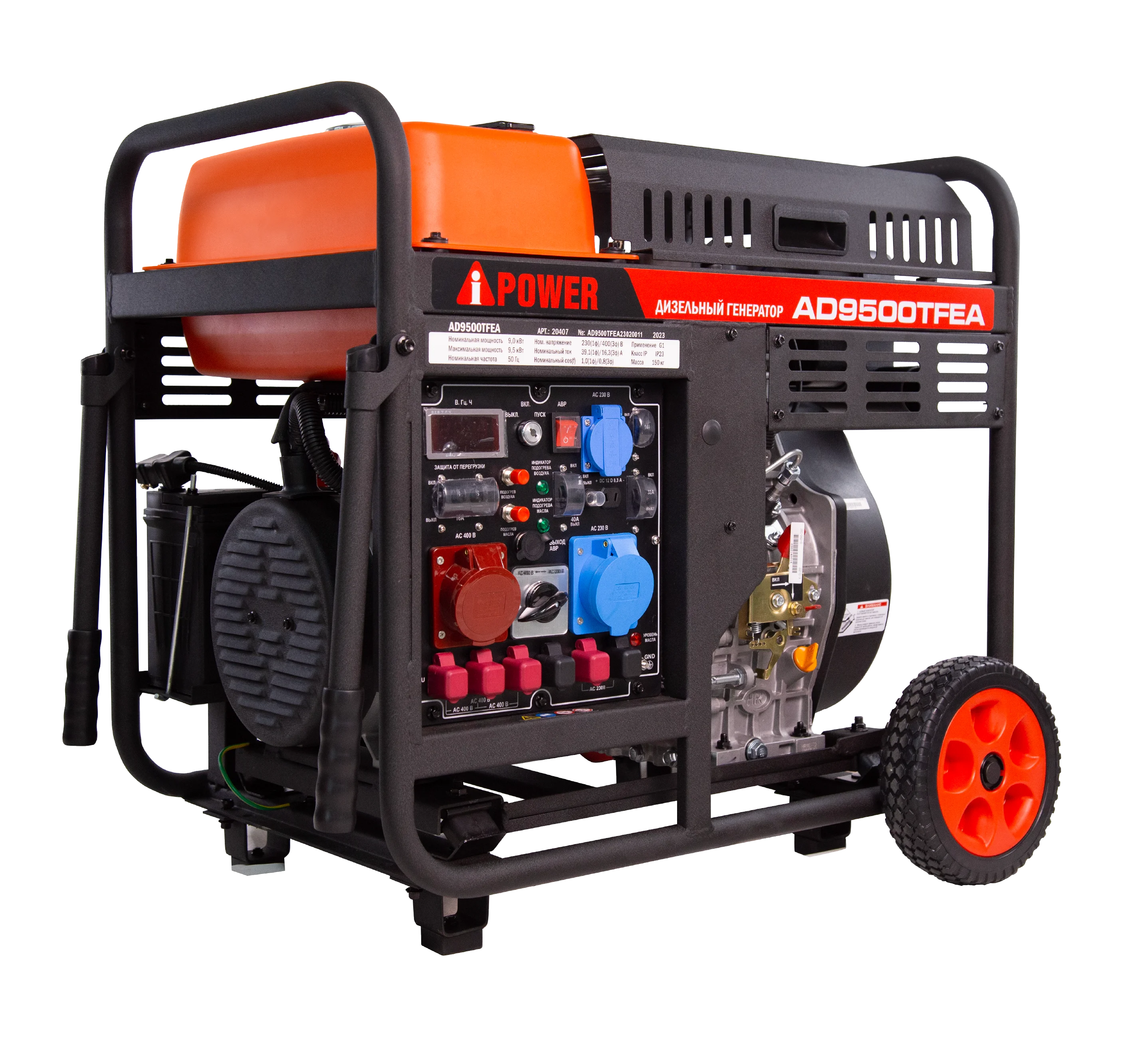 Дизельный генератор AD9500TEA – трехфазная электростанция номинальной мощностью 9 кВт с дизельным двигателем воздушного охлаждения. Отлично подходит для мобильного электроснабжения загородных домов, вахтовых поселков, торговых точек, в военных и пожарных частях; в медицинских учреждениях; при строительстве отдалённых объектов и проведении аварийно-спасательных работ. Дизельный 4-тактный OHV-двигатель объемом 718 м3 обеспечивает высокий ресурс работы генератора. Синхронный альтернатор оснащен системой регулировки выходного напряжения (AVR), который гарантирует стабильное выходное напряжение и частоту тока. Станция оснащена электростартером, при необходимости можно подключить блок автоматики для организации электроснабжения в автоматическим режиме. Система защиты от перегрузки, короткого замыкания и низкого уровня масла увеличит ресурс службы генератора. Двигатель и альтернатор устанавливаются на раму через силовую плиту, которая является прочной базой, а также имеет демпферы для гашения вибраций. Такая силовая схема генераторов A-IPOWER эффективно снижает вибрации, более прочна и обеспечивает долговечность подшипников, сальников, опор скольжения коленвала двигателя, ротора альтернатора, а также генератора в целом. Дизельные генераторы A-IPOWER имеют увеличенные передние панели для размещения большого количества розеток, что создает большую вариативность и удобство для подключения. Отличительное преимущество дизельных генераторов A-IPOWER - наличие не только «ПОДОГРЕВА ВОЗДУХА», но и наличие «ПОДОГРЕВА МОТОРНОГО МАСЛА». Подогрев моторного масла позволяет разогреть его в картере, сделать более жидким в мороз, и быстрее и легче завести дизельный двигатель при низких температурах. Быстросъемная верхняя крышка генератора надежно крепится на штифтах и резиновых втулках, а не болтах, которые откручиваются от вибраций, что позволяет легко и удобно обслуживать дизельные генераторы A-IPOWER.