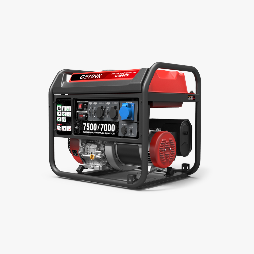 Генератор имеет сварную раму и стальную переднюю панель, которые защищают основные узлы оборудования и придают общую жесткость и прочность конструкции. Двигатель генератора рабочим объемом 458 см3 запускается ручным стартером быстро и без проблем даже при низких температурах с предварительной подкачкой топлива через праймер. Генератор оснащен всеми необходимыми функциями безопасности, такие как защита от короткого замыкания, перегрузки, перепадов напряжения и никого уровня масла, что обеспечивает безопасную эксплуатацию. Топливный бак 40 литров обеспечивает 13 часов непрерывной работы от одной заправки при нагрузке 75% (5,3 кВт) и 10 часов при 100% нагрузке (7,0 кВт). Есть возможность установить колеса и передние рукоятки для удобной транспортировки генератора.