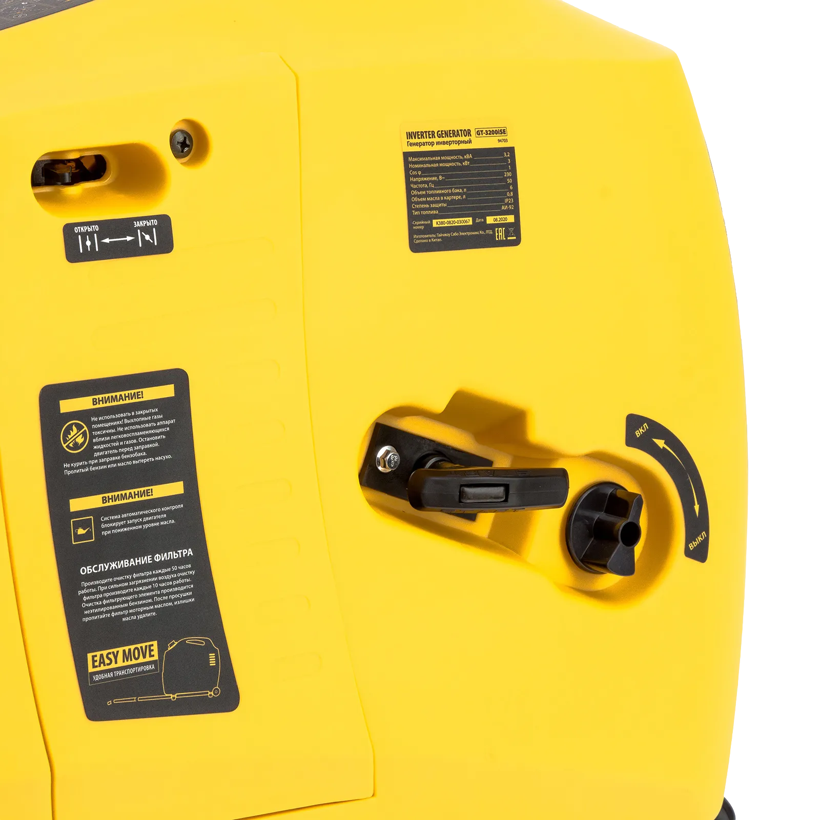 - Малый вес Denzel GT-3200iSE 3,2 кВт, 230 В, бак 6 л, закрытый корпус, электростартер 94703;