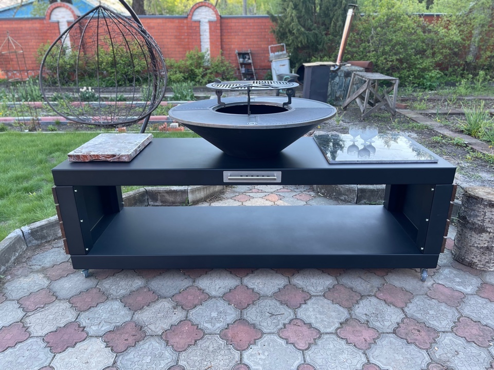 Очаг спроектирован по фирменным лекалам DIO: весь жир попадает в специальный отсек, защищая вас от канцерогенов, а чугун жарочной поверхности прогревается равномерно и интенсивно. Кстати, вы можете регулировать тягу горения дров при помощи специального регулятора.
