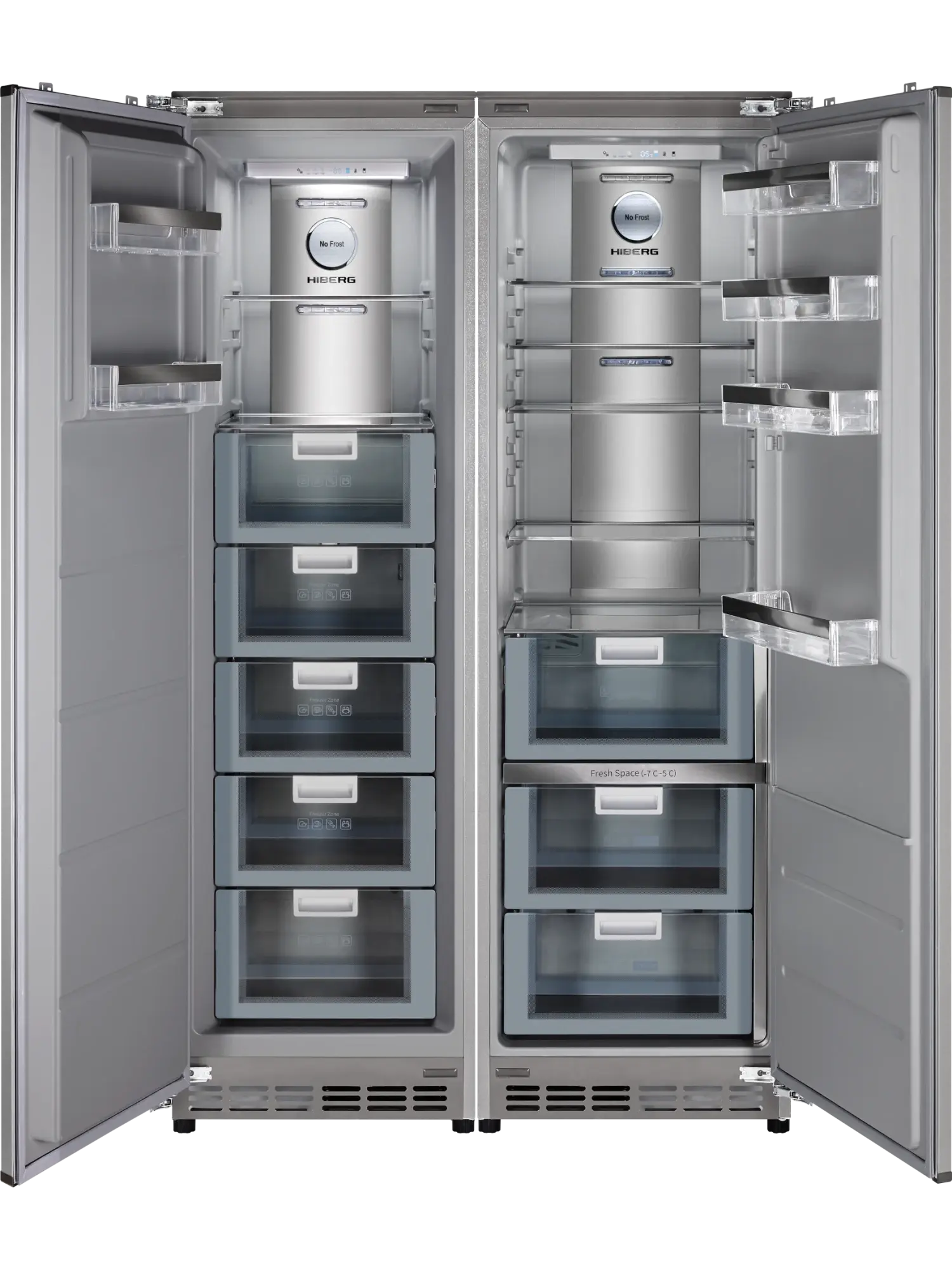 Встраиваемая комбинация морозильник HIBERG i-FRB 35 NF и холодильник i-RFB 35 NF — практичное решение для хранения продуктов и создания идеальных условий для их свежести.